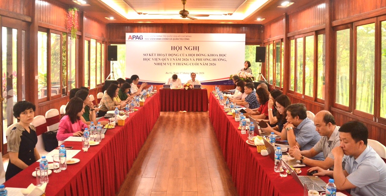 (apag.edu.vn) - Chiều ngày 17/4/2026, tại Hà Nội, Học viện Hành chính và Quản trị công tổ chức Hội nghị sơ kết hoạt động của Hội đồng Khoa học Học viện quý I/2026 và phương hướng, nhiệm vụ 9 tháng cuối năm 2026. PGS.TS. Nguyễn Bá Chiến, Giám đốc Học viện Hành chính và Quản trị công, chủ trì Hội nghị.