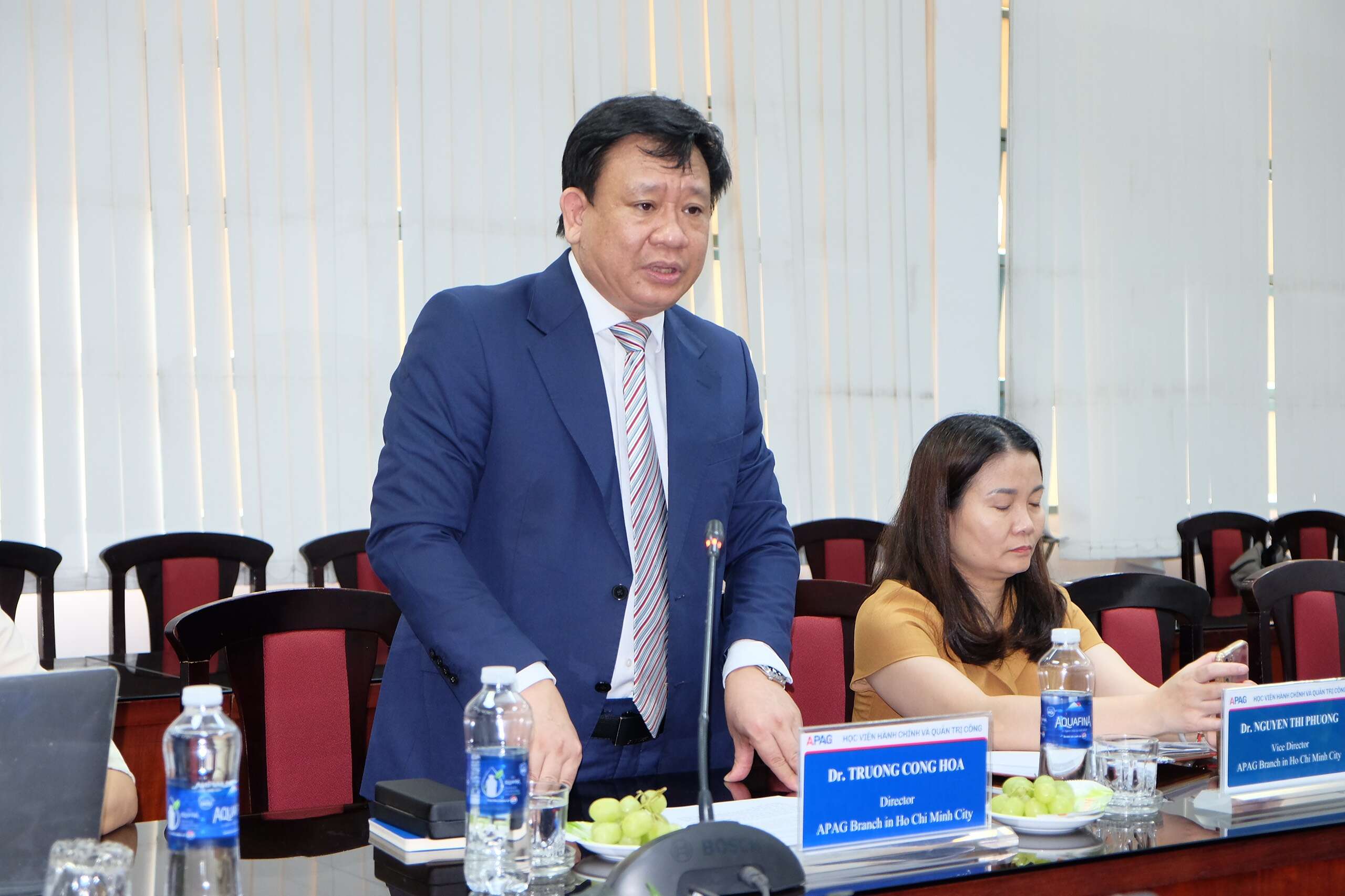 TS. Trương Cộng Hòa - Giám đốc Phân hiệu Học viện Hành chính và Quản trị công tại TP. Hồ Chí Minh phát biểu tại buổi lễ.