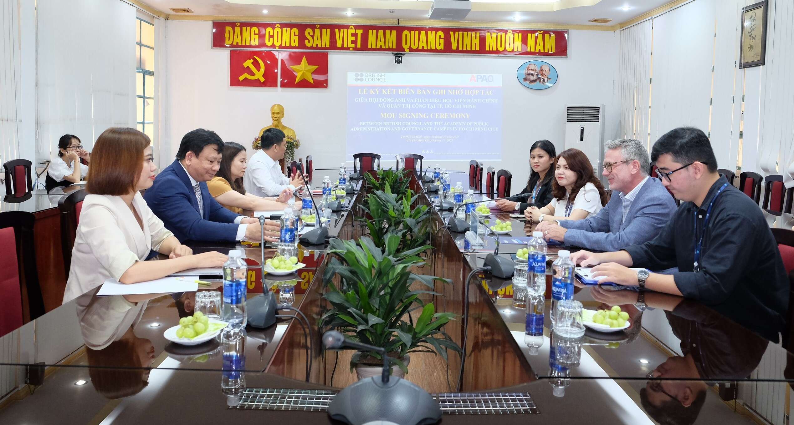 Toàn cảnh Lễ ký kết Biên bản ghi nhớ hợp tác giữa Phân hiệu Học viện Hành chính và Quản trị công tại TP. Hồ Chí Minh và Hội đồng Anh tại Việt Nam.