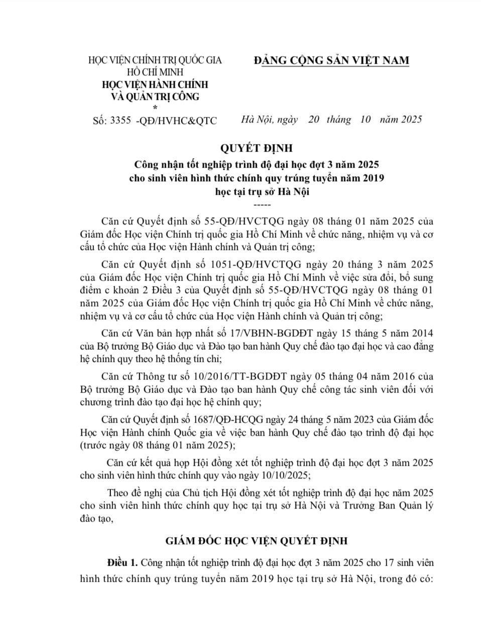 (apag.edu.vn) – Chiều ngày 19/10/2025, tại Hà Nội, Học viện Hành chính và Quản trị công đã tổ chức Lễ bảo vệ luận án tiến sĩ cấp Học viện cho nghiên cứu sinh Lê Thị Ngọc Lệ, chuyên ngành Quản lý công, mã số 9340403, với đề tài: “Chính sách phát triển du lịch bền vững tại vùng Kinh tế trọng điểm miền Trung”, dưới sự hướng dẫn khoa học của PGS.TS. Lưu Kiếm Thanh, nguyên Phó Giám đốc Học viện Hành chính Quốc gia và TS. Nguyễn Thị Linh Giang, Học viện Chính trị khu vực III.