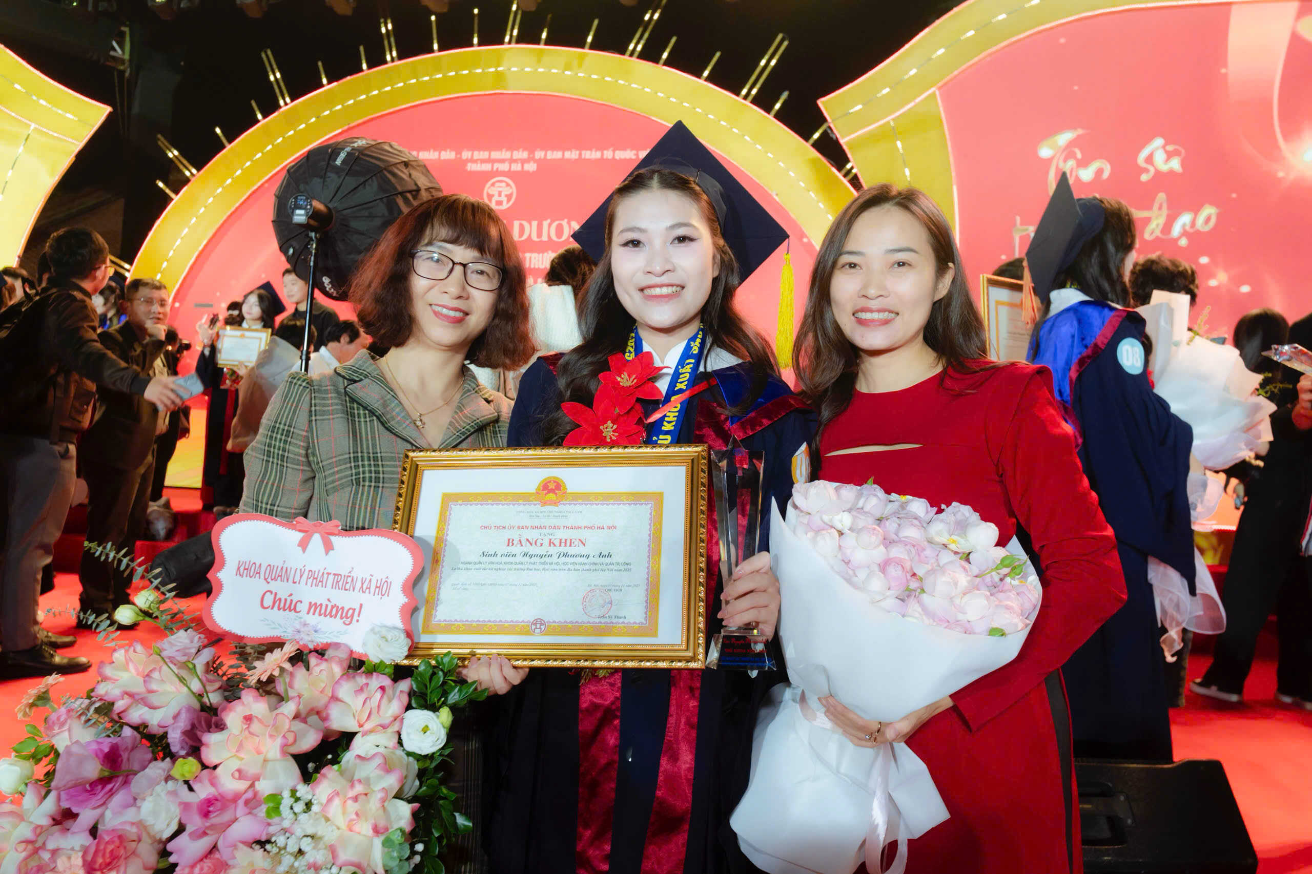 Đại diện Lãnh đạo và giảng viên Khoa Quản lý phát triển xã hội tặng hoa chúc mừngVinh dự được vinh danh Thủ khoa xuất sắc Thủ đô là điểm tựa quan trọng để Nguyễn Phương Anh tự tin bước vào chặng đường mới. Với nền tảng tri thức vững chắc, tinh thần trách nhiệm và khả năng thích ứng, Khoa Quản lý phát triển xã hội tin tưởng rằng Phương Anh sẽ tiếp tục phát huy những phẩm chất đáng quý của sinh viên Học viện: năng lực, bản lĩnh, sáng tạo. Thành công hôm nay không chỉ là niềm tự hào của gia đình và bản thân Phương Anh, mà còn là niềm vinh dự lớn của Học viện Hành chính và Quản trị công nói chung và Khoa Quản lý phát triển xã hội nói riêng trong quá trình xây dựng môi trường đào tạo nguồn nhân lực chất lượng cao phục vụ công cuộc đổi mới đất nước.