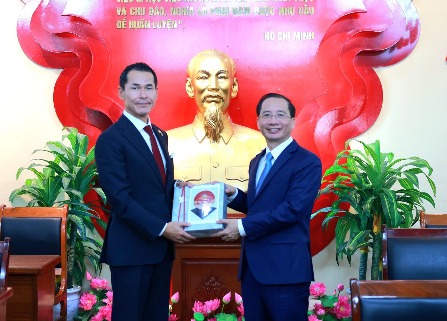 Ông Kenji Ozeki tặng quà lưu niệm cho PGS.TS. Nguyễn Bá Chiến