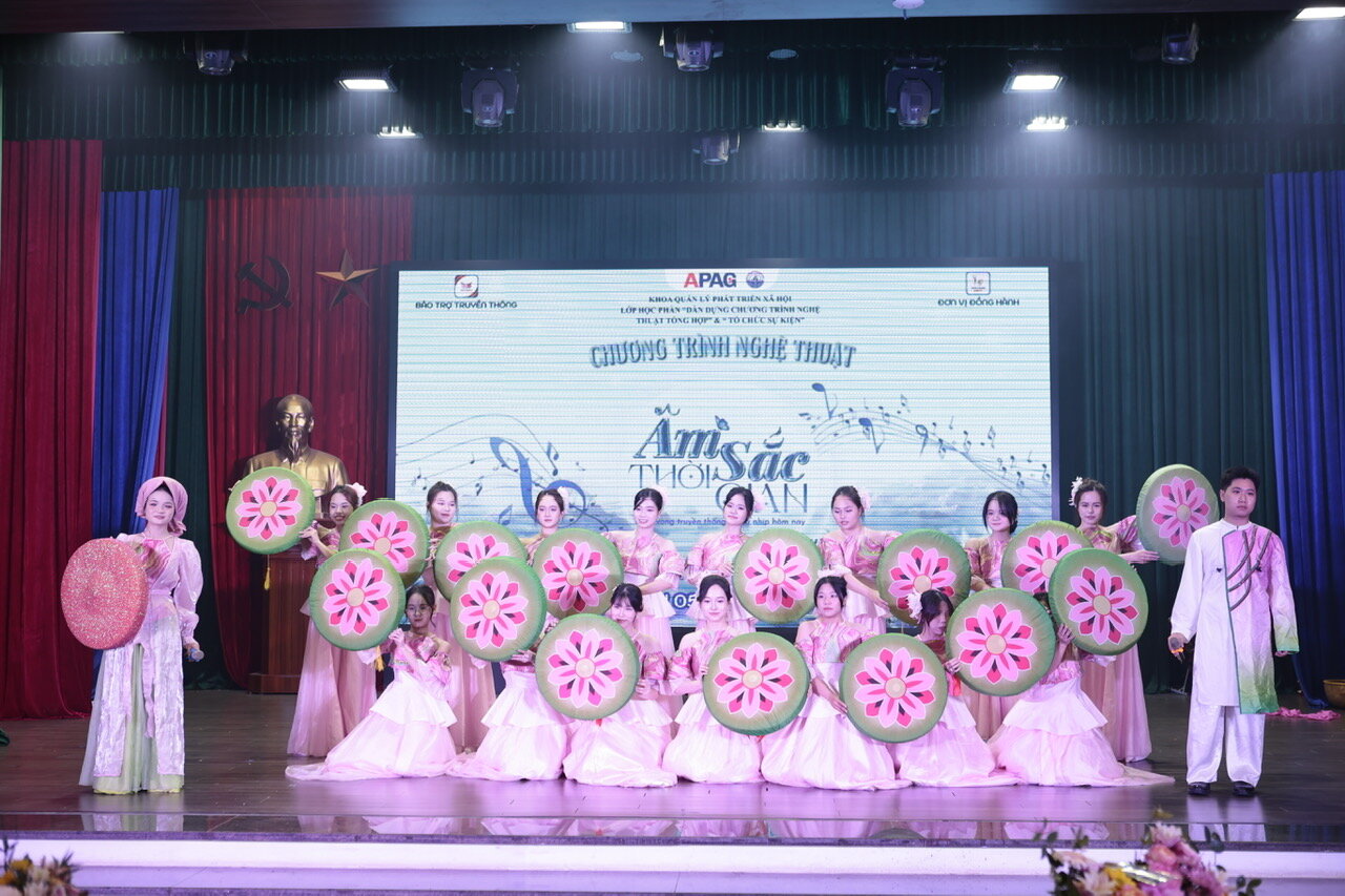 Chiều ngày 05/12/2025 tại Hội trường tầng 2, cơ sở 371 Nguyễn Hoàng Tôn, trong khuôn khổ kỳ thi kết thúc học phần Dàn dựng chương trình nghệ thuật tổng hợp và Tổ chức sự kiện, chương trình “Âm sắc thời gian” của lớp 2305QLVA khoa Quản lý phát triển xã hội đã thu hút đông đảo giảng viên, sinh viên và phụ huynh tham dự, được đơn vị truyền thông APAG Media và Khoa Quản lý phát triển xã hội truyền hình trực tiếp trên các nền tảng mạng xã hội.