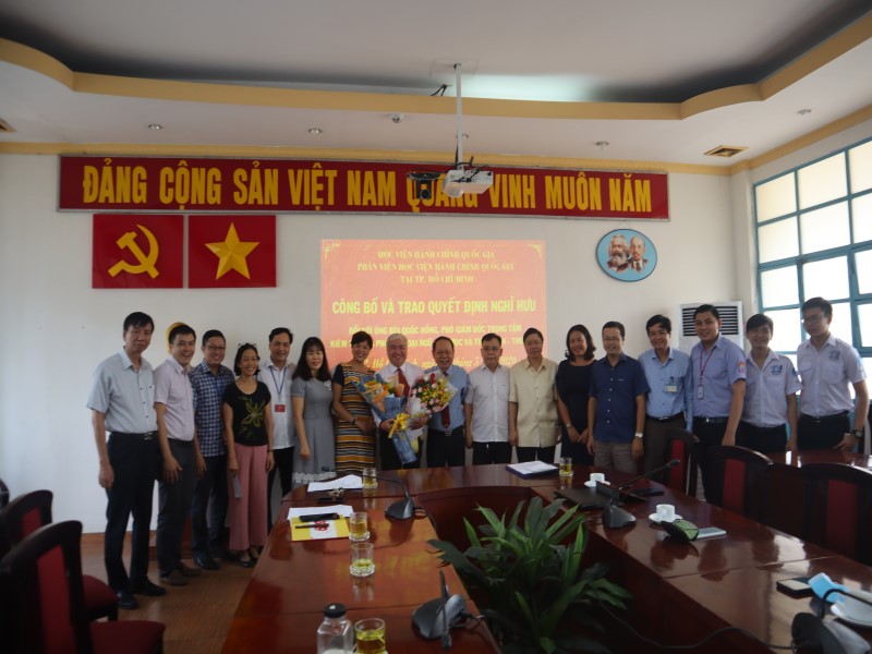 Phân viện Học viện tại TP. Hồ Chí Minh trao Quyết định nghỉ hưu hưởng chế độ BHXH cho CN Bùi Quốc Hồng – Phó Giám đốc Trung tâm kiêm Trưởng phòng Ngoại ngữ – Tin học và Thông tin – Thư viện