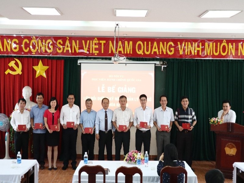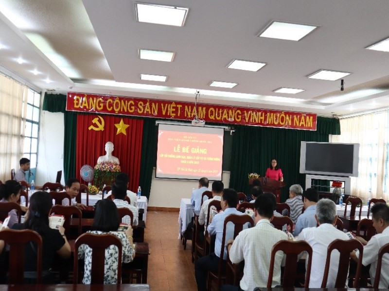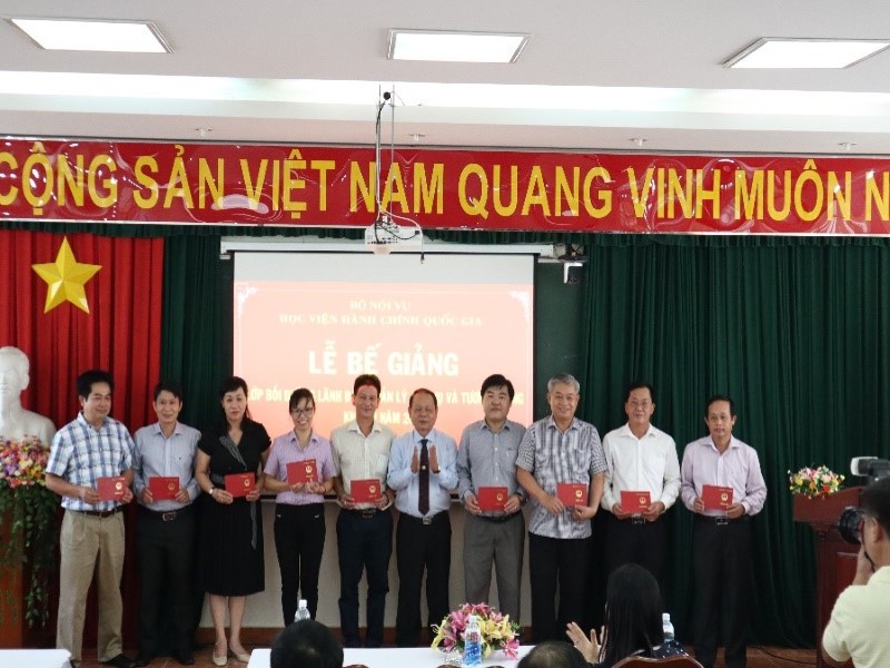 Cùng với các đầu cầu tại các cơ sở của Học viện Hành chính Quốc gia, sáng 21/6/2019, tại Phân viện Học viện Hành chính Quốc gia tại TP. Hồ Chí Minh, thừa ủy quyền của Giám đốc Học viện Hành chính Quốc gia, các Lớp bồi dưỡng năng lực, kỹ năng lãnh đạo, quản lý cấp Sở, cấp Vụ và tương đương khóa II năm 2019 đã tổ chức Lễ bế giảng với sự tham dự của TS Hà Quang Thanh – Phó Giám đốc Thường trực Phân viện Học viện tại TP. Hồ Chí Minh, ThS. Nguyễn Thị Minh Thúy – Phó Trưởng Phòng Quản lý đào tạo bồi dưỡng, đại diện lãnh đạo một số đơn vị và các Học viên tham gia các lớp bồi dưỡng này.