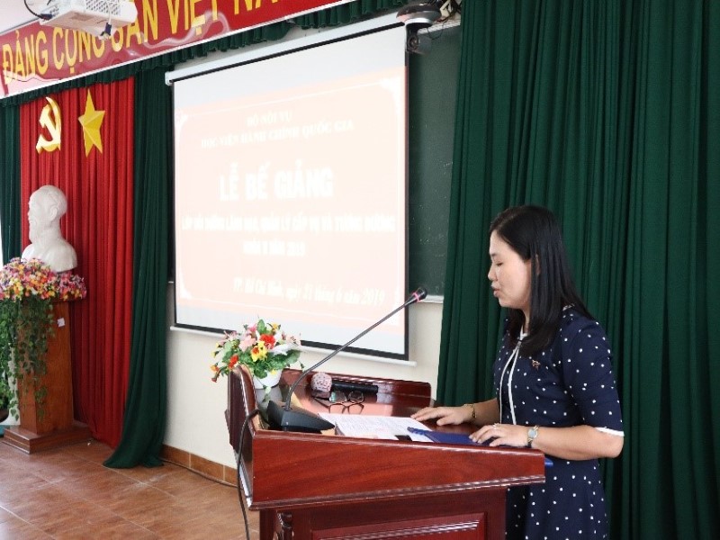 Thừa ủy quyền của lãnh đạo Học viện, ThS. Nguyễn Thị Minh Thúy công bố các quyết định liên quan đến kết thúc khóa học.
