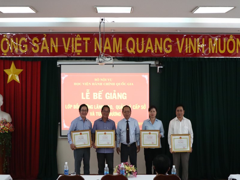 Sau thời gian học tập theo chương trình đã định, sáng 28/6/2019, tại Phân viện Học viện Hành chính Quốc gia tại TP. Hồ Chí Minh, thừa ủy quyền của Giám đốc Học viện Hành chính Quốc gia, Lớp bồi dưỡng lãnh đạo, quản lý cấp Sở và tương đương năm 2019 đã tổ chức Lễ bế giảng với sự tham dự của TS Hà Quang Thanh – Phó Giám đốc Thường trực Phân viện Học viện tại TP. Hồ Chí Minh, TS. Nguyễn Thế Tài – Trưởng Phòng Quản lý đào tạo bồi dưỡng, đại diện lãnh đạo một số đơn vị và 32 Học viên tham gia các lớp bồi dưỡng này.