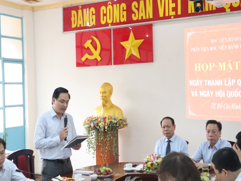 Thay mặt Đảng ủy Bộ phận, Ban Giám đốc Phân viện, Công đoàn Bộ phận Phân viện HVHCQG tại TP. Hồ Chí Minh, TS Hà Quang Thanh đã đánh giá cao sự cống hiến và đóng góp quan trọng của các cựu chiến binh tại Phân viện trong thời gian ở quân ngũ trước đây và trong quá trình xây dựng và phát triển của Phân viện, chia sẻ những khó khăn và sự vươn lên của các cựu chiến bình trên vị trí công tác của mình để hoàn thành nhiệm vụ được giao tại Phân viện. Đồng thời, trao quà của Giám đốc Học viện đến các cựu chiến binh nhân dịp này.