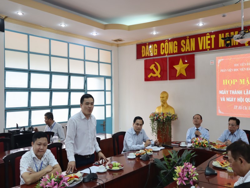 Thừa ủy quyền của lãnh đạo Phân viện, ThS Nguyễn Văn Thanh – Trưởng phòng TCHC đã ôn lại ý nghĩa của Ngày thành lập Quân dội Nhân dân Việt Nam và Ngày Hội Quốc phòng toàn dân và những đóng góp của các cựu chiến binh tại Phân viện trong quá trình xây dựng và phát triển của Phân viện.