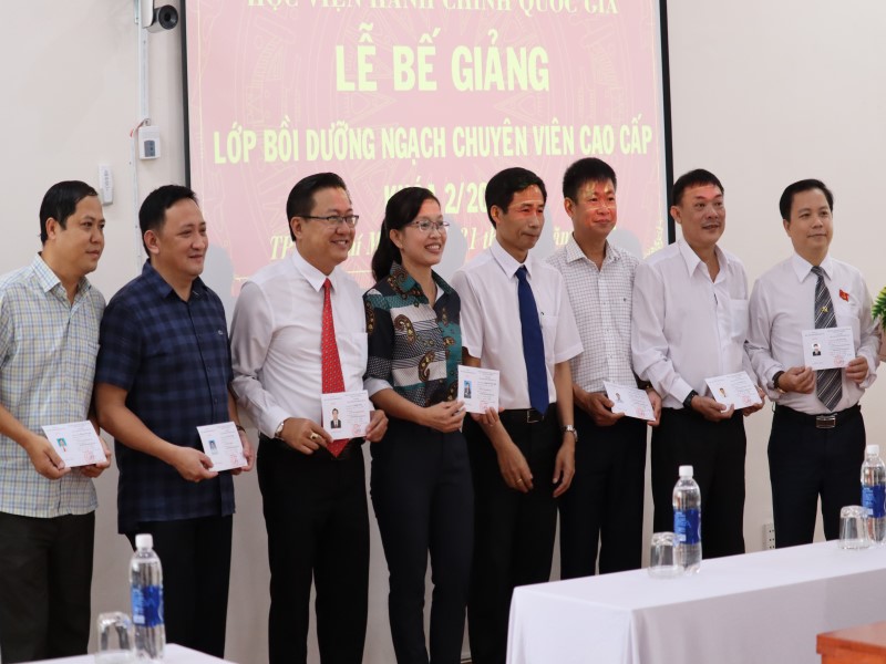 Đại diện Phòng Quản lý Đào tạo và Bồi dưỡng đã báo cáo tổng kết khóa học, công bố các quyết định liên quan đến khóa học. Kết thúc khóa học, các học viên đã hoàn thành tốt các nội dung và yêu cầu đề ra với kết quả 100% học viên xếp loại khá, được Giám đốc Học viện cấp chứng chỉ hoàn thành khóa học. TS. Nguyễn Thế Tài đã trao Chứng chỉ cho các học viên hoàn thành khóa học.
