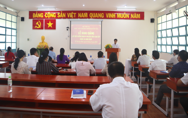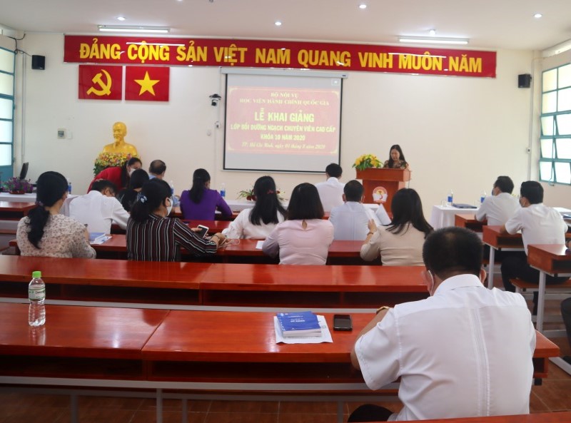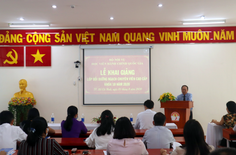 Sáng ngày 01/8/2020, Phân viện Học viện Hành chính Quốc gia tại Thành phố Hồ Chí Minh đã tổ chức khai giảng Lớp bồi dưỡng ngạch chuyên viên cao cấp khóa 10 năm 2020. Buổi lễ có sự tham dự của TS. Hà Quang Thanh – Phó Giám đốc Thường trực Phân viện Học viện Hành chính Quốc gia tại Thành phố Hồ Chí Minh, TS. Nguyễn Thế Tài – Trưởng phòng Quản lý Đào tạo và Bồi dưỡng, đại diện lãnh đạo một số đơn vị và các học viên tham gia lớp học.