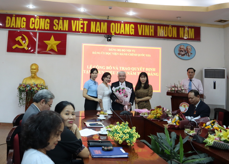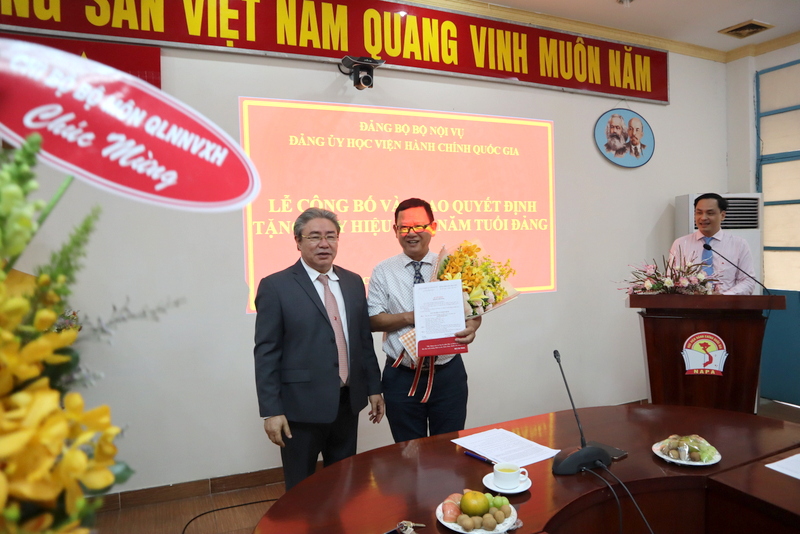 Đồng chí Đặng Xuân Hoan – Bí thư Đảng ủy, Giám đốc Học viện Hành chính Quốc gia dự và trao Huy hiệu Đảng, Quyết định tặng Huy hiệu Đảng cho các đảng viên.