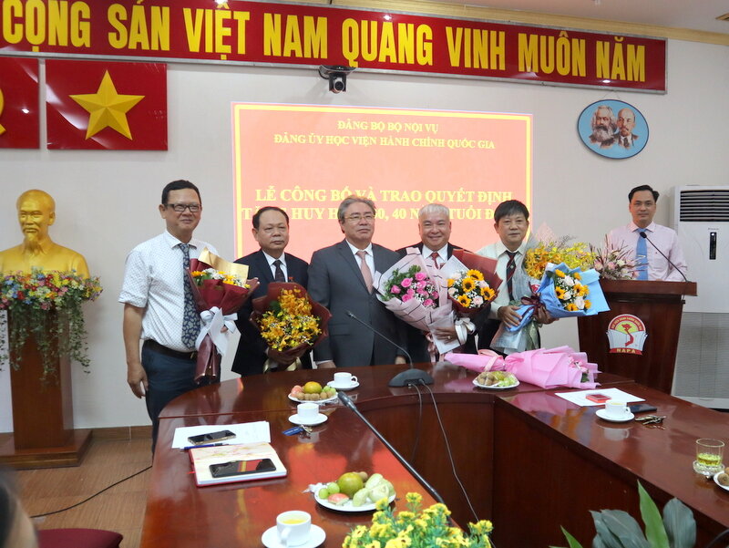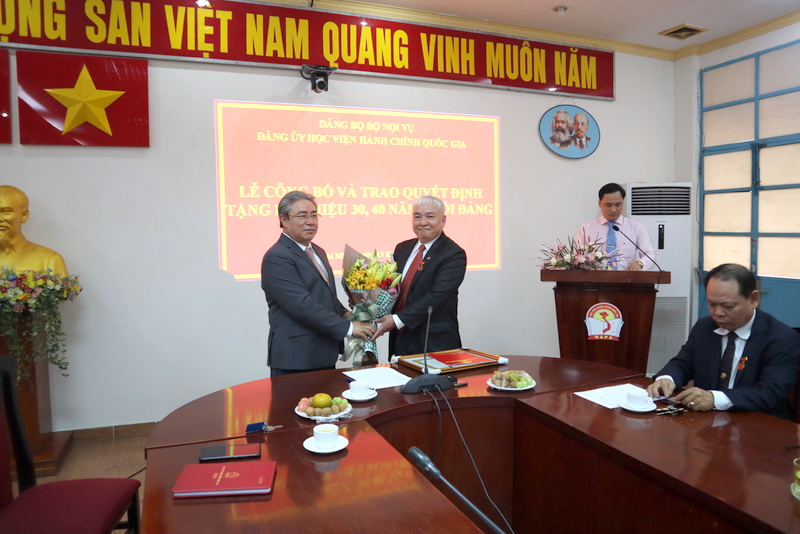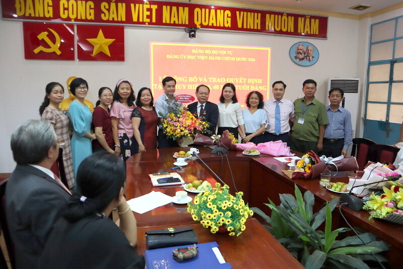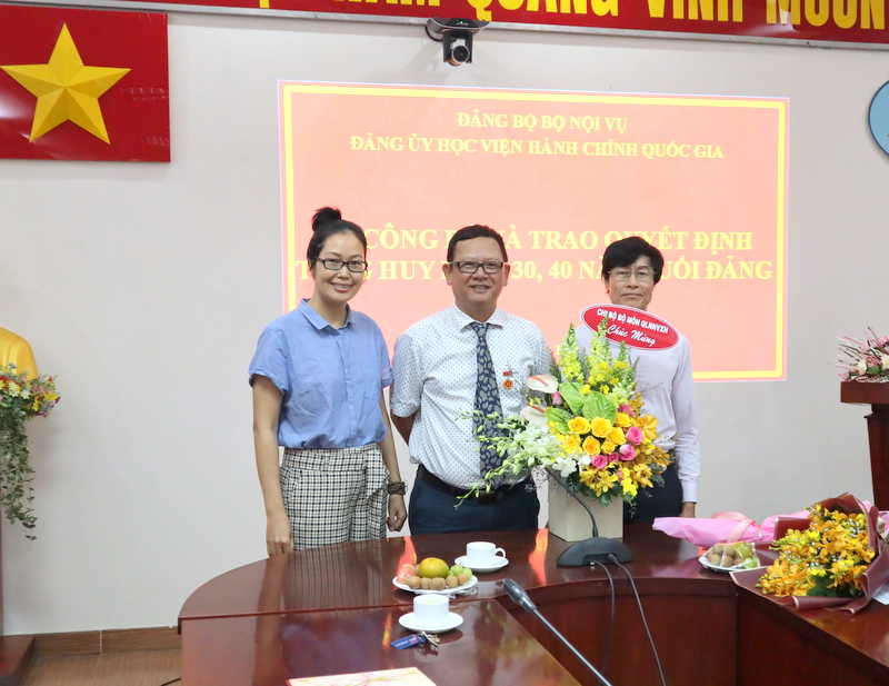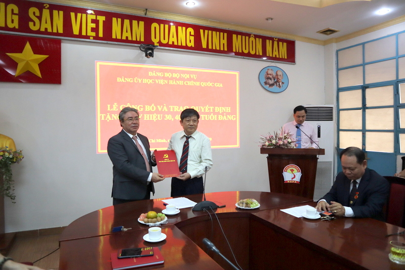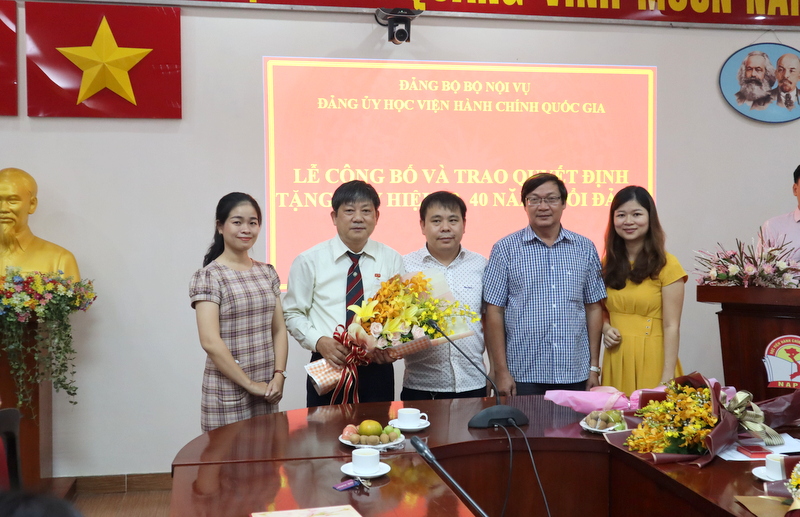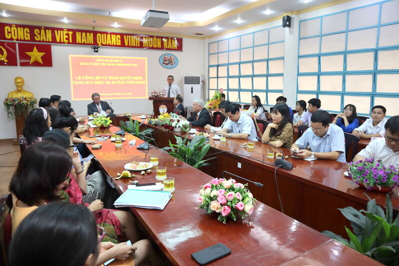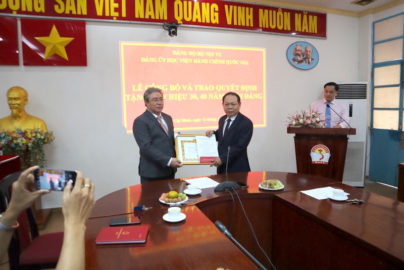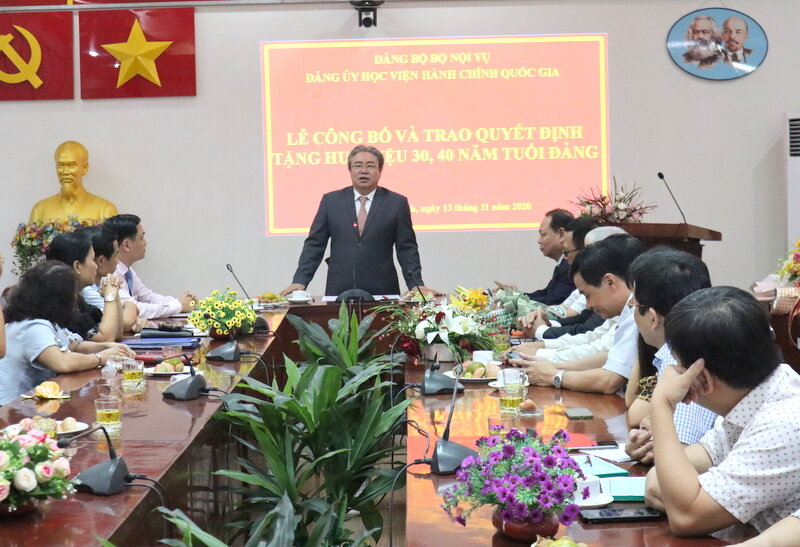Chiều ngày 13/11/2020, tại Phân viện Học viện Hành chính Quốc gia tại Thành phố Hồ Chí Minh, Đảng ủy Học viện Hành chính Quốc gia trang trọng tổ chức Lễ công bố và trao Quyết định tặng Huy hiệu 40 năm tuổi Đảng, Huy hiệu 30 năm tuổi Đảng cho 04 đảng viên thuộc Đảng bộ Học viện Hành chính Quốc gia.