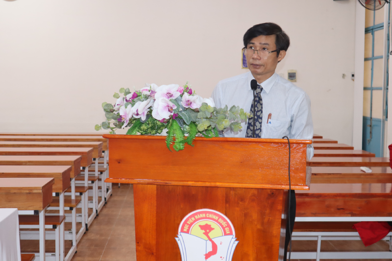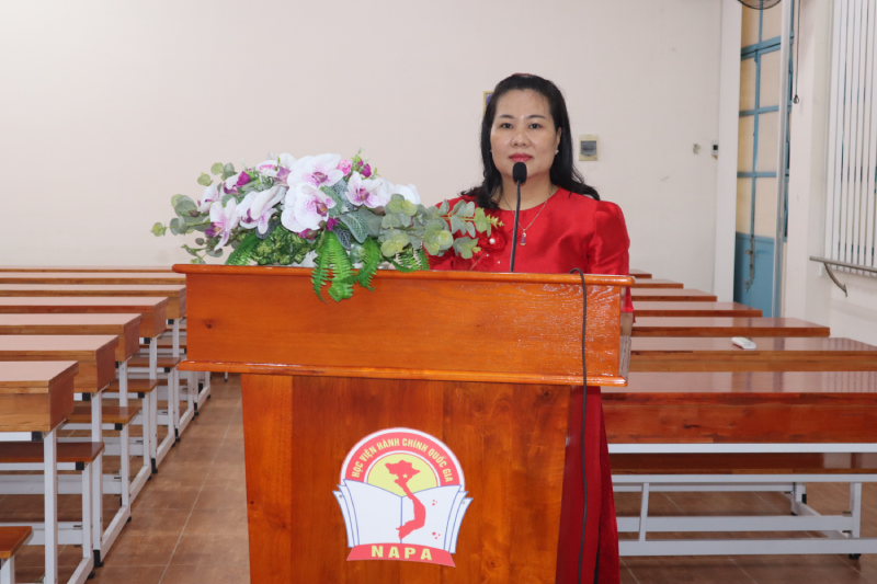 ThS. Nguyễn Thị Minh Thúy – Phó trưởng Phòng Quản lý Đào tạo và Bồi dưỡng tuyên bố lý do buổi Lễ và giới thiệu đại biểu tham dự khai giảng gồm: TS. Hà Quang Thanh – Quyền Giám đốc Phân viện Học viện Hành chính Quốc gia tại TP. Hồ Chí Minh, TS. Nguyễn Thế Tài – Trưởng phòng, Phòng Quản lý Đào tạo và Bồi dưỡng cùng 77 học viên.