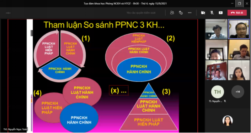 Trình bày tham luận, ThS. Nguyễn Ngọc Toán – Trưởng phòng, Phòng Nghiên cứu Khoa học và Hợp tác Quốc tế tập trung so sánh làm rõ phương pháp nghiên cứu Khoa học Luật Hiến pháp, Khoa học Luật Hành chính và Khoa học Hành chính.