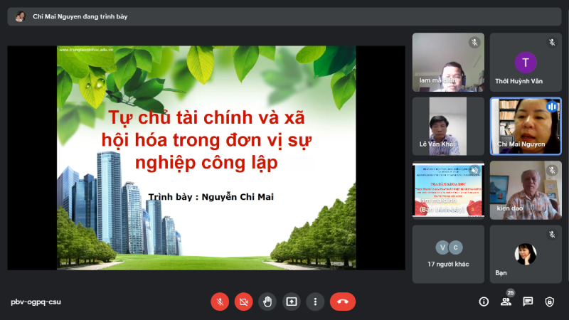 Tiếp theo trong phần nội dung Tọa đàm, ThS.GVC. Nguyễn Chi Mai, Phó trưởng Bộ môn QLNN về Kinh tế và Tài chính công đã trình bày tham luận “Tự chủ tài chính và xã hội hóa trong đơn vị sự nghiệp công lập”. Tham luận đã làm rõ xã hội hóa là một xu hướng không thể đảo ngược trong giai đoạn hiện nay ở Việt Nam và trên thế giới, cụ thể là xã hội hóa trong đơn vị sự nghiệp công lập từ đó bàn luận và tìm kiếm giải pháp nâng cao hiệu quả hoạt động tự chủ tài chính và xã hội hóa trong đơn vị sự nghiệp công lập.