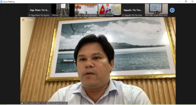 Ông Trần Phước Hiền – Phó Chủ tịch UBND tỉnh Quảng Ngãi trình bày tham luận về thực tiễn thực đổi mới tổ chức và hoạt động của chính quyền địa phương theo Nghị quyết 18-NQ/TW trên địa bàn tỉnh Quảng Ngãi. Ông Trần Phước Hiền khẳng định kết quả thực hiện Nghị quyết 18-NQ/TW tại tỉnh Quảng Ngãi đạt nhiều kết quả tích cực như: sắp xếp các Ban quản lý dự án; sáp nhập các đơn vị hành chính cấp huyện, cấp xã; sáp nhập thôn, tổ dân phố; thí điểm việc tổ chức mô hình chính quyền một cấp ở huyện Lý Sơn; sắp xếp các cơ quan chuyên môn cấp tỉnh, cấp huyện. Tuy nhiên, việc triển khai thực hiện vẫn còn những khó khăn vướng mắc khi thực hiện như chức năng, nhiệm vụ các cơ quan, tổ chức; quy định, hướng dẫn của các cơ quan Đảng, Nhà nước vẫn còn những điểm khác biệt; việc nhất thể hoá chức danh chưa có sự thống nhất… Ông Trần Phước Hiền kiến nghị trung ương cần phân cấp, phân quyền mạnh mẽ, triệt để hơn cho chính quyền địa phương; quan tâm đến chế độ chính sách cho đội ngũ cán bộ cấp cơ sở.