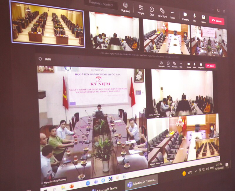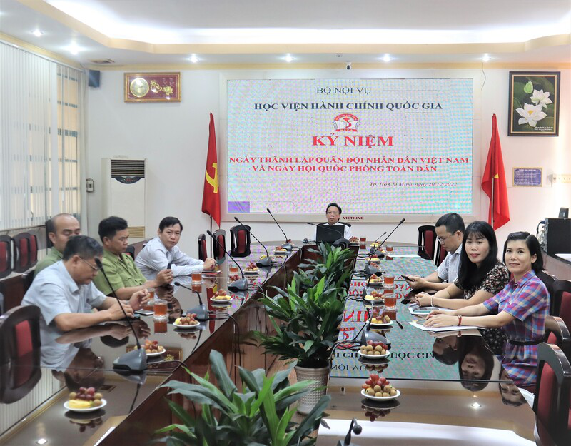 Chiều ngày 20/12/2022, Phân viện Học viện Hành chính Quốc gia tại Thành phố Hồ Chí Minh đã tham gia buổi gặp mặt kỷ niệm 78 năm Ngày thành lập Quân đội nhân dân Việt Nam (22/12/1944 – 22/12/2022), 33 năm Ngày hội Quốc phòng toàn dân (22/12/1989 – 22/12/2022) do Học viện Hành chính Quốc gia tổ chức theo hình thức trực tuyến và trực tiếp.