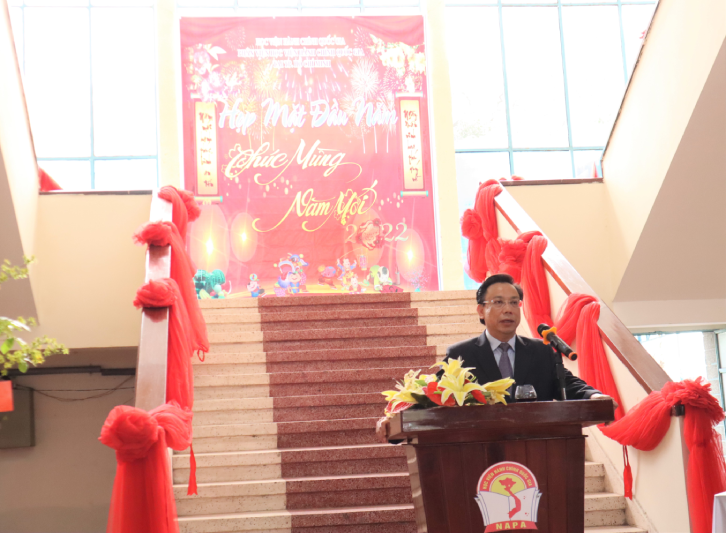 Phát biểu tại buổi họp mặt, TS. Nguyễn Đăng Quế, Phó Giám đốc điều hành Học viện, gửi lời chúc mừng năm mới tốt đẹp nhất tới công chức, viên chức, người lao động đã và đang công tác tại Phân viện, cùng toàn thể học viên và gia đình.