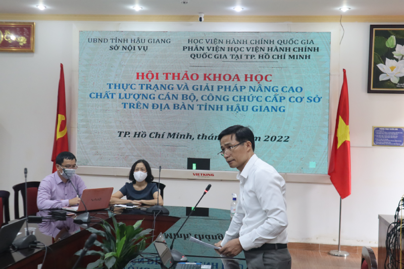 Kết luận Hội thảo, ThS. Phan Hoàng Ngoan thay mặt Ban Tổ chức Hội thảo tiếp thu những ý kiến tham luận, thảo luận của các chuyên gia, nhà khoa học, nhà quản lý, đại biểu tham dự cũng như đã gửi bài đến Hội thảo. Đó là tư liệu quý mang tính khách quan, toàn diện từ lý luận chung đến thực tiễn để nhóm nghiên cứu triển khai, hoàn thiện Đề tài khoa học đạt chất lượng, hiệu quả từ thực tiễn tỉnh Hậu Giang, góp phần nâng cao chất lượng cán bộ, công chức cấp xã, từ đó nâng cao chất lượng hệ thống chính trị cơ sở gần dân, gắn bó máu thịt với Nhân dân, củng cố vững chắc niềm tin giữa Đảng, chính quyền với Nhân dân trong giai đoạn mới.