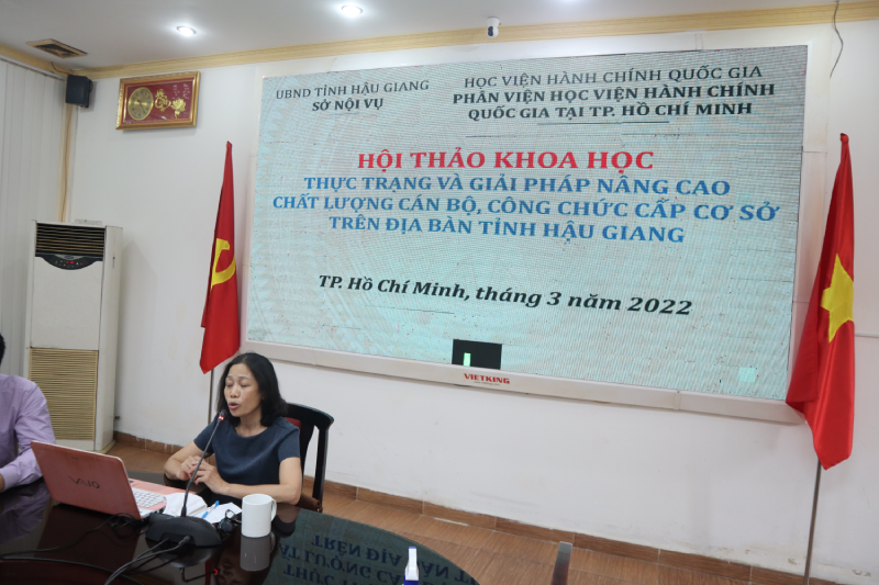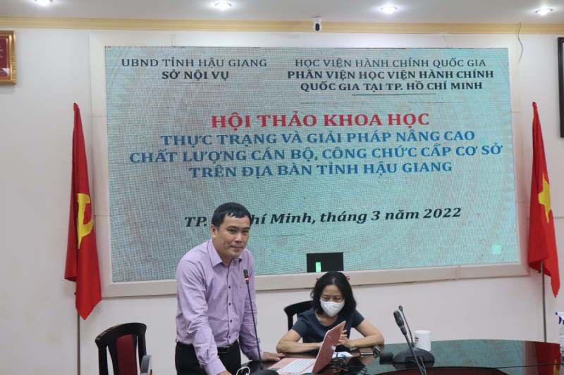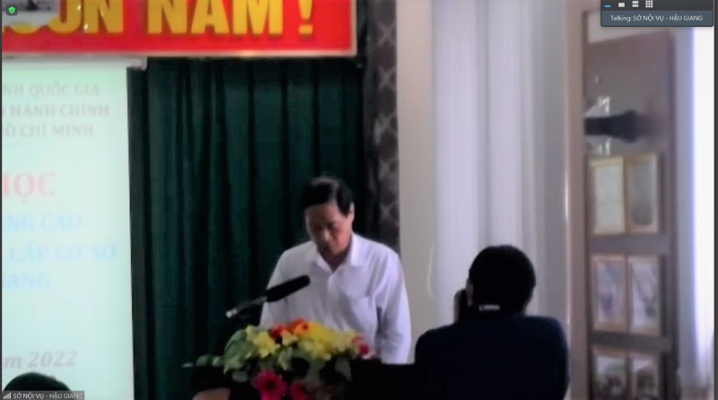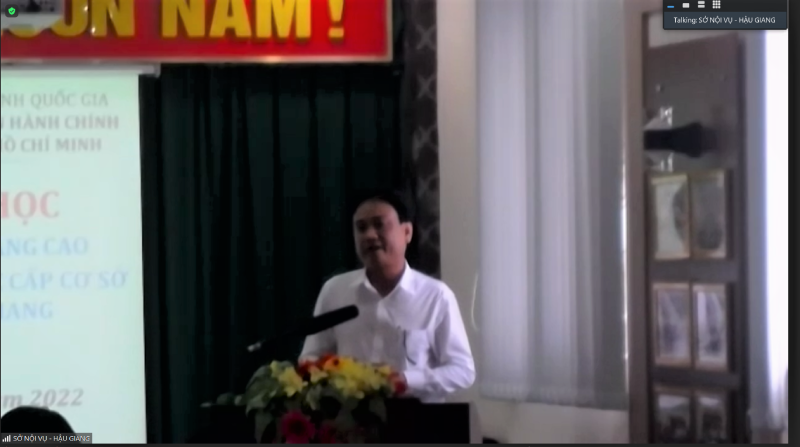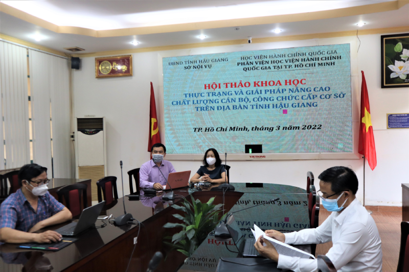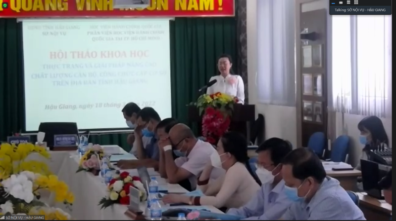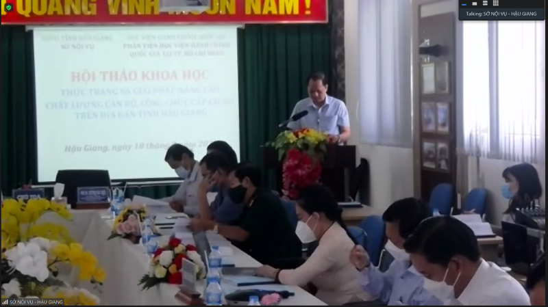 Sáng ngày 18/3/2022, Sở Nội vụ tỉnh Hậu Giang phối hợp với Phân viện Học viện Hành chính Quốc gia tại Thành phố Hồ Chí Minh tổ chức Hội thảo khoa học “Thực trạng và giải pháp nâng cao chất lượng cán bộ, công chức cấp cơ sở trên địa bàn tỉnh Hậu Giang” theo hình thức trực tiếp kết hợp trực tuyến.