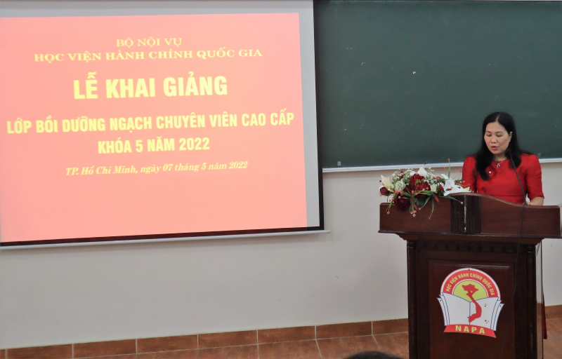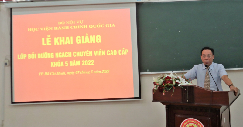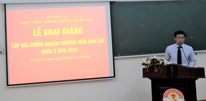 Thực hiện kế hoạch bồi dưỡng, vào lúc 8 giờ 00 phút ngày 07/5/2022, Phân viện Học viện Hành chính Quốc gia tại Thành phố Hồ Chí Minh trang trọng tổ chức Lễ khai giảng lớp Bồi dưỡng ngạch chuyên viên cao cấp khóa 5 năm 2022.