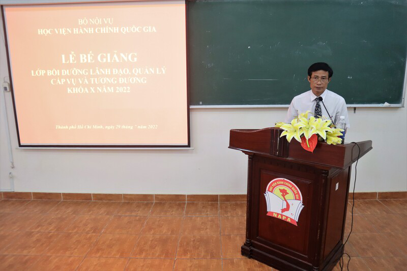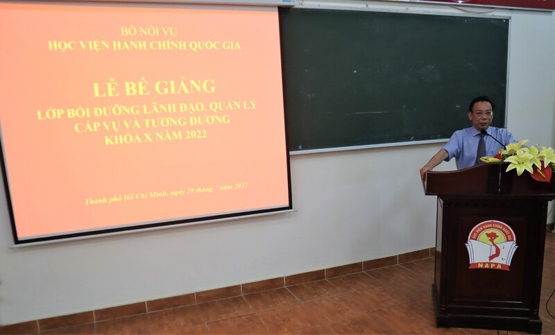 PGS.TS. Huỳnh Văn Thới – Phó Giám đốc phụ trách Phân viện Học viện Hành chính Quốc gia tại TP. Hồ Chí Minh dự và phát biểu bế giảng Lớp bồi dưỡng.