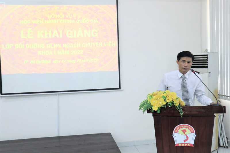 Sáng ngày 17/9/2022, Phân viện Học viện Hành chính Quốc gia tại Thành phố Hồ Chí Minh trang trọng tổ chức Lễ khai giảng lớp Bồi dưỡng Quản lý nhà nước ngạch chuyên viên khóa I năm 2022.