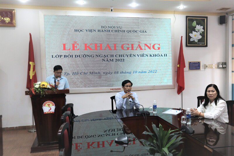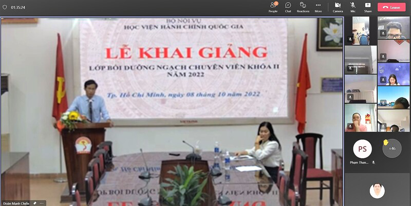 Sáng ngày 08/10/2022, Phân viện Học viện Hành chính Quốc gia tại Thành phố Hồ Chí Minh trang trọng tổ chức Lễ khai giảng lớp Bồi dưỡng ngạch chuyên viên khóa 2 năm 2022 cho Bảo hiểm xã hội tỉnh Bà Rịa- Vũng Tàu theo hình thức trực tuyến.