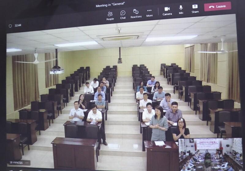 Các đại biểu và học viên tham dự Lễ Khai giảng theo hình thức trực tuyến tại điểm cầu Hà Nội