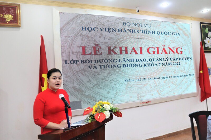 Sáng ngày 09/10/2022, Phân viện Học viện Hành chính Quốc gia tại Thành phố Hồ Chí Minh trang trọng tổ chức Lễ khai giảng lớp Bồi dưỡng Lãnh đạo, quản lý cấp huyện và tương đương khóa 7 năm 2022.