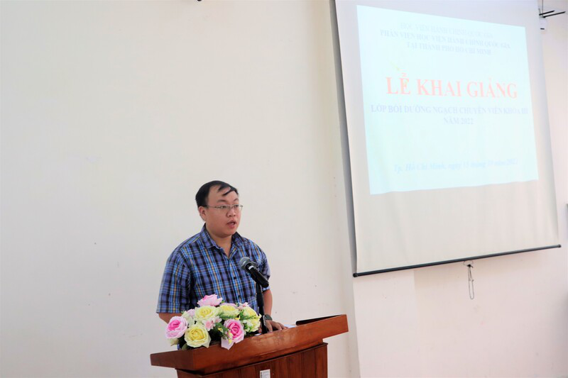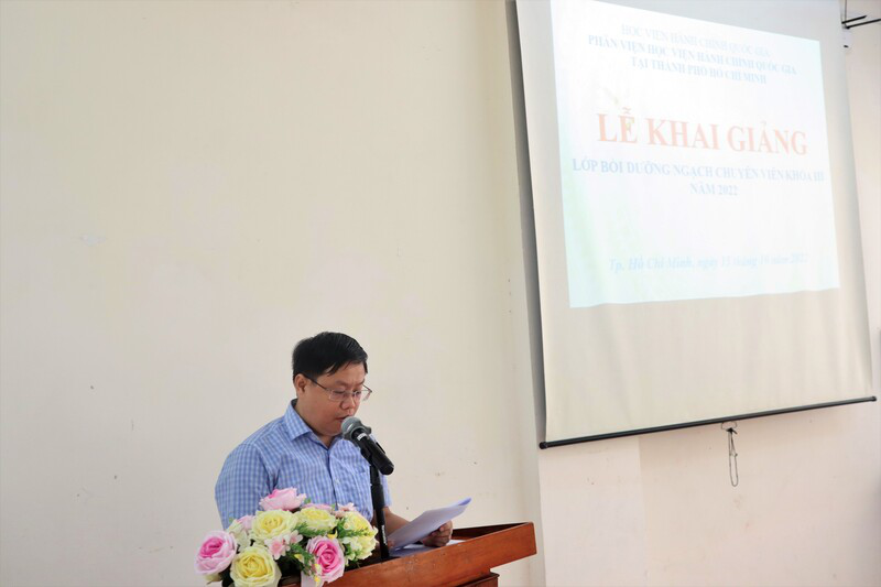 Tại buổi Lễ, ThS. Nguyễn Thị Minh Thúy, Phó Trưởng phòng, Phòng Quản lý Đào tạo và Bồi dưỡng công bố Quyết định số 3795/QĐ-HCQG, ngày 14/10/2022 về việc tổ chức lớp Bồi dưỡng ngạch chuyên viên khóa III năm 2022 tại Phân viện Học viện Hành chính Quốc gia tại Thành phố Hồ Chí Minh.