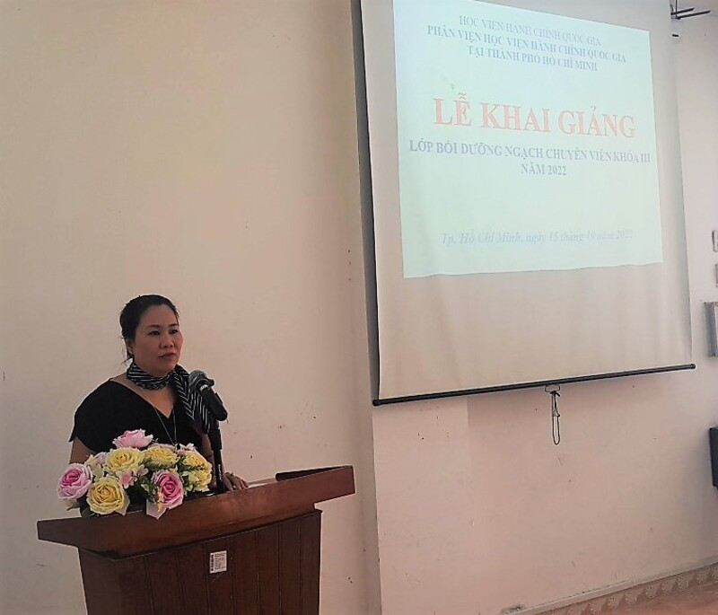 Sáng ngày 15/10/2022, Phân viện Học viện Hành chính Quốc gia tại Thành phố Hồ Chí Minh trang trọng tổ chức Lễ khai giảng lớp Bồi dưỡng ngạch chuyên viên khóa 3 năm 2022 Phân viện Học viện Hành chính Quốc gia tại Thành phố Hồ Chí Minh.
