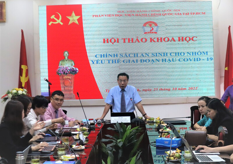 Sáng ngày 25/10/2022, Phân viện Học viện Hành chính Quốc gia tại Thành phố Hồ Chí Minh tổ chức Hội thảo khoa học “Chính sách an sinh cho nhóm yếu thế giai đoạn hậu Covid-19” theo hình thức trực tiếp kết hợp trực tuyến.