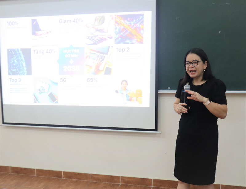 Bà Võ Thị Trung Trinh, Phó Giám đốc Sở Thông tin và Truyền thông TP. Hồ Chí Minh báo cáo “Chuyển đổi số và xây dựng Thành phố Hồ Chí Minh trở thành đô thị thông minh”