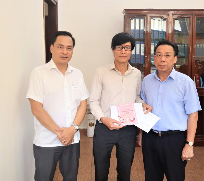 PGS.TS. Huỳnh Văn Thới trao giấy khen năm 2021 của Ban Chấp hành Công đoàn Bộ Nội vụ cho tập thể và cá nhân