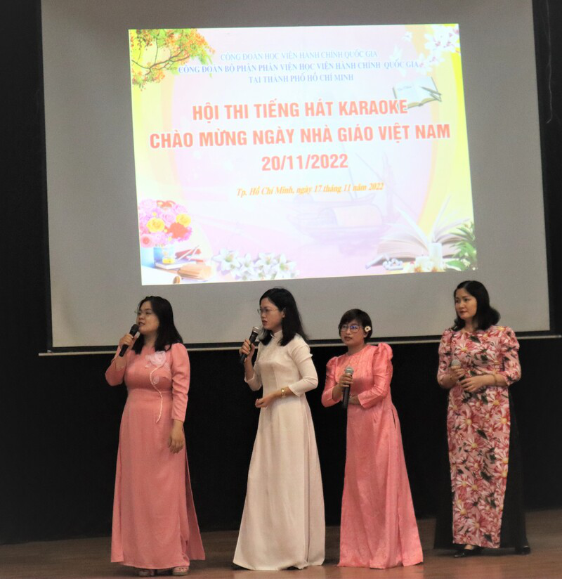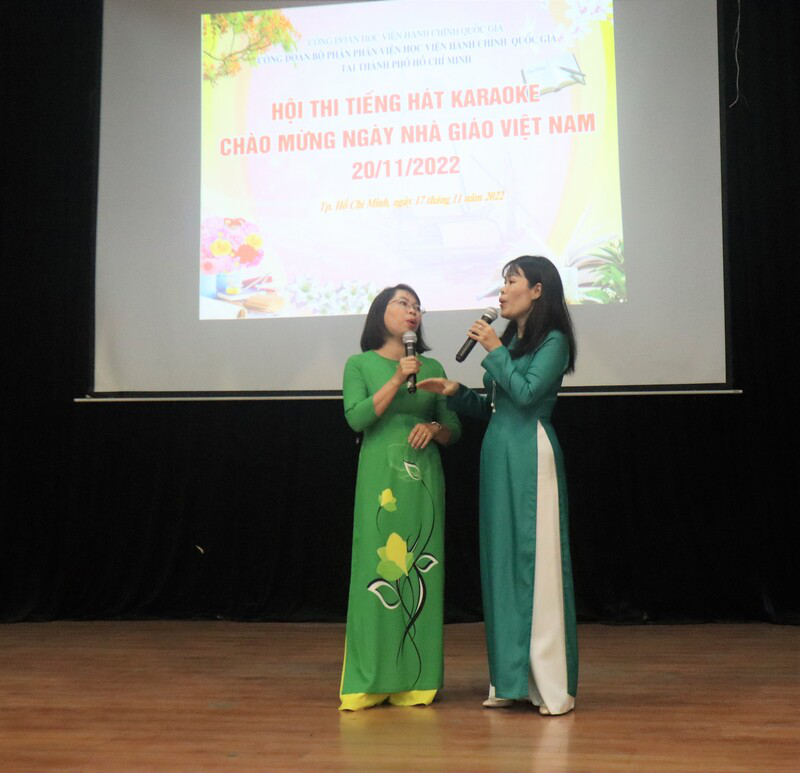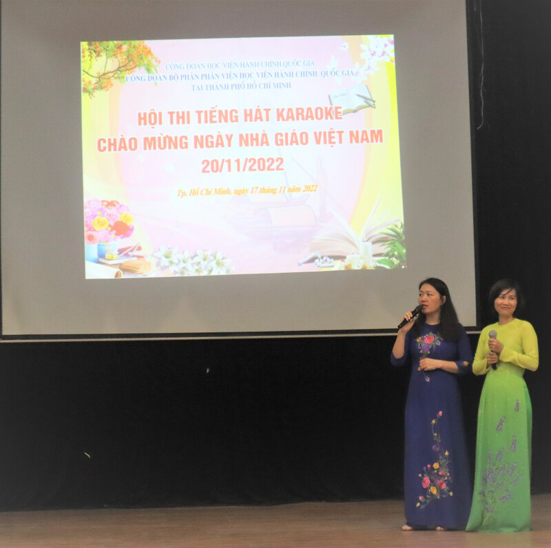 Chiều ngày 17/11/2021, các tổ công đoàn tại Phân viện cùng tập trung tại Hội trường lớn, hào hứng tham gia Hội thi tiếng hát karaoke. Hội thi đã diễn ra thành công, nhận được sự tham gia nhiệt tình của công đoàn viên với tổng số 19 tiết mục văn nghệ, tập trung vào chủ đề ca ngợi quê hương, đất nước, tôn vinh nghề dạy học, được dàn dựng công phu, đầu tư kỹ lưỡng cả về nội dung, trang phục và đạo cụ. Hoạt động này góp phần tăng sự gắn kết giữa các thành viên của Phân viện và mỗi cá nhân có thêm kỷ niệm đẹp tại nơi công tác.