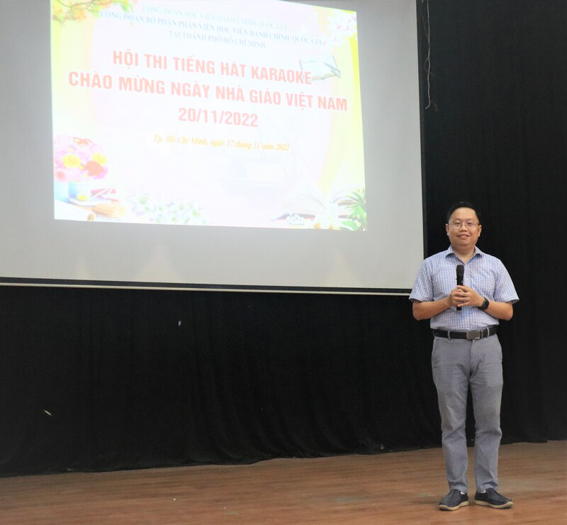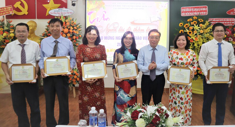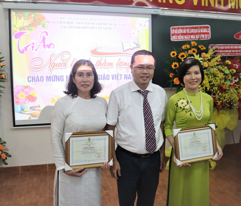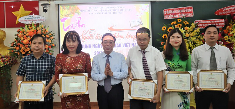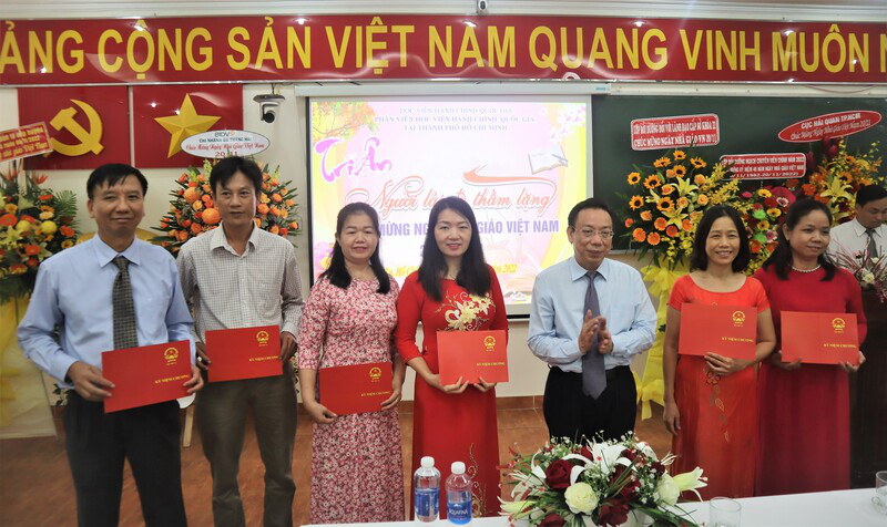 Nhằm giữ gìn, phát huy truyền thống tôn sư trọng đạo, tôn vinh những đóng góp của nhiều thế hệ nhà giáo trong sự nghiệp đào tạo, bồi dưỡng cán bộ, công chức, viên chức của Học viện Hành chính Quốc gia, sáng ngày 18/11/2022, từ điểm cầu truyền hình Phân viện Học viện Hành chính Quốc gia tại Thành phố Hồ Chí Minh, PGS.TS Huỳnh Văn Thới – Phó Bí thư Đảng ủy Bộ phận, Phó Giám đốc Phụ trách Phân viện; TS. Phạm Quang Huy – nguyên Phó Giám đốc Học viện Hành chính Quốc gia thường trực cơ sở tại TP. Hồ Chí Minh; cùng các giảng viên, viên chức, người lao động; đại diện tổ chức Đảng, đoàn thể đã phấn khởi tham dự Lễ Kỷ niệm Ngày Nhà giáo Việt Nam 20/11 do Học viện Hành chính Quốc gia tổ chức theo hình thức trực tiếp kết hợp trực tuyến.