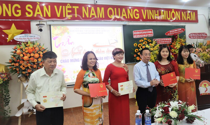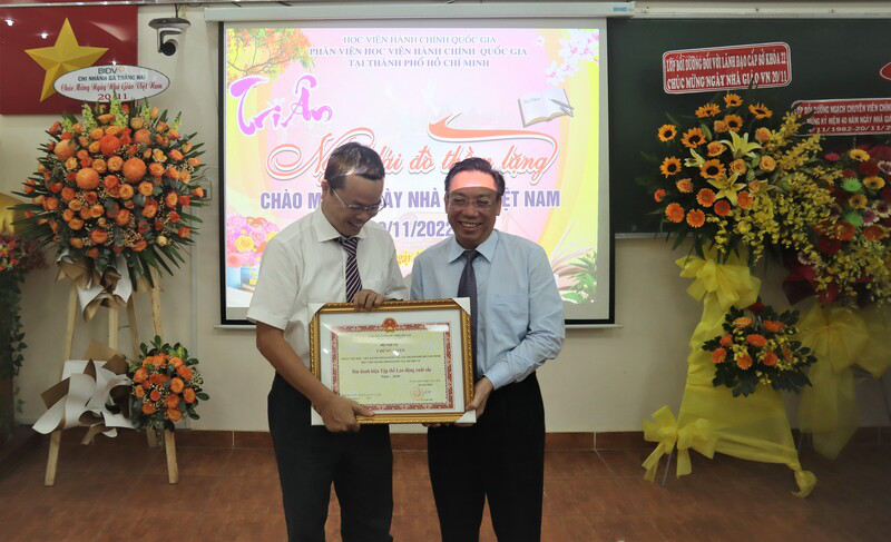 PGS.TS. Huỳnh Văn Thới trao giấy khen “Tập thể Lao động xuất sắc” năm 2021 của Bộ Nội vụ cho Phân viện Học viện Hành chính Quốc gia tại TP. Hồ Chí Minh