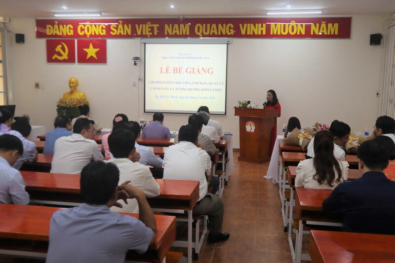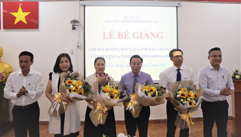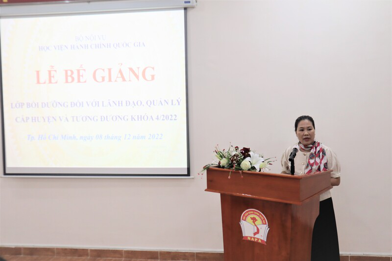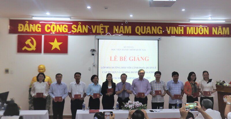 Sáng ngày 08/12/2022, Phân viện Học viện Hành chính Quốc gia tại Thành phố Hồ Chí Minh trang trọng tổ chức Lễ bế giảng Lớp bồi dưỡng lãnh đạo, quản lý cấp huyện và tương đương khóa 4/2022.