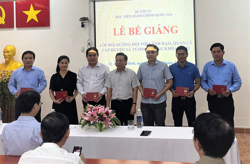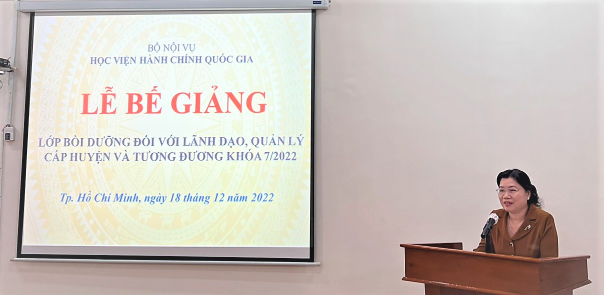 Sáng ngày 18/12/2022, Phân viện Học viện Hành chính Quốc gia tại Thành phố Hồ Chí Minh trang trọng tổ chức Lễ bế giảng Lớp bồi dưỡng lãnh đạo, quản lý cấp huyện và tương đương khóa 7/2022.
