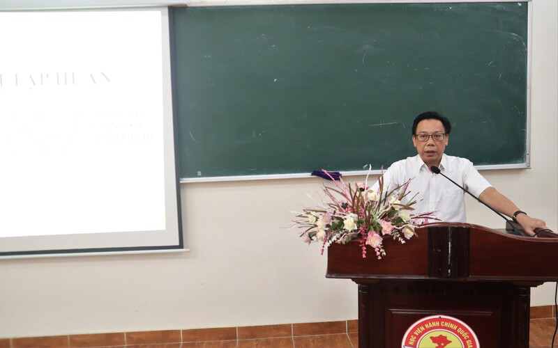 TS.GVCC. Hà Quang Thanh, nguyên Quyền Giám đốc Phân viện Học viện Hành chính Quốc gia tại Thành phố Hồ Chí Minh truyền đạt tại Hội nghị