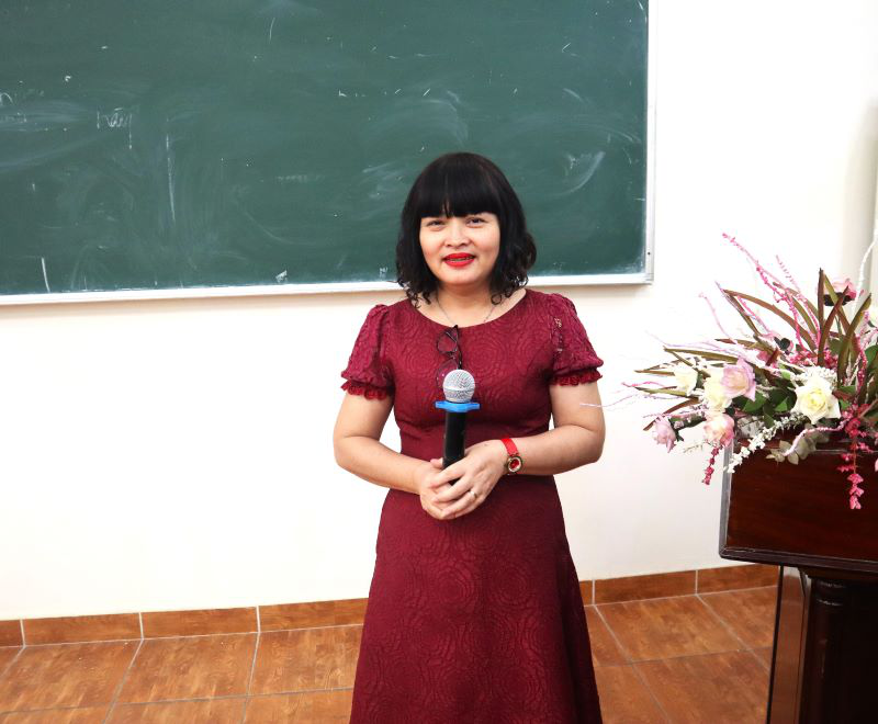 PGS.TS.GVCC. Tạ Thị Thanh Tâm, Trưởng Bộ môn, Bộ môn Văn bản và Công nghệ hành chính truyền đạt tại Hội nghị