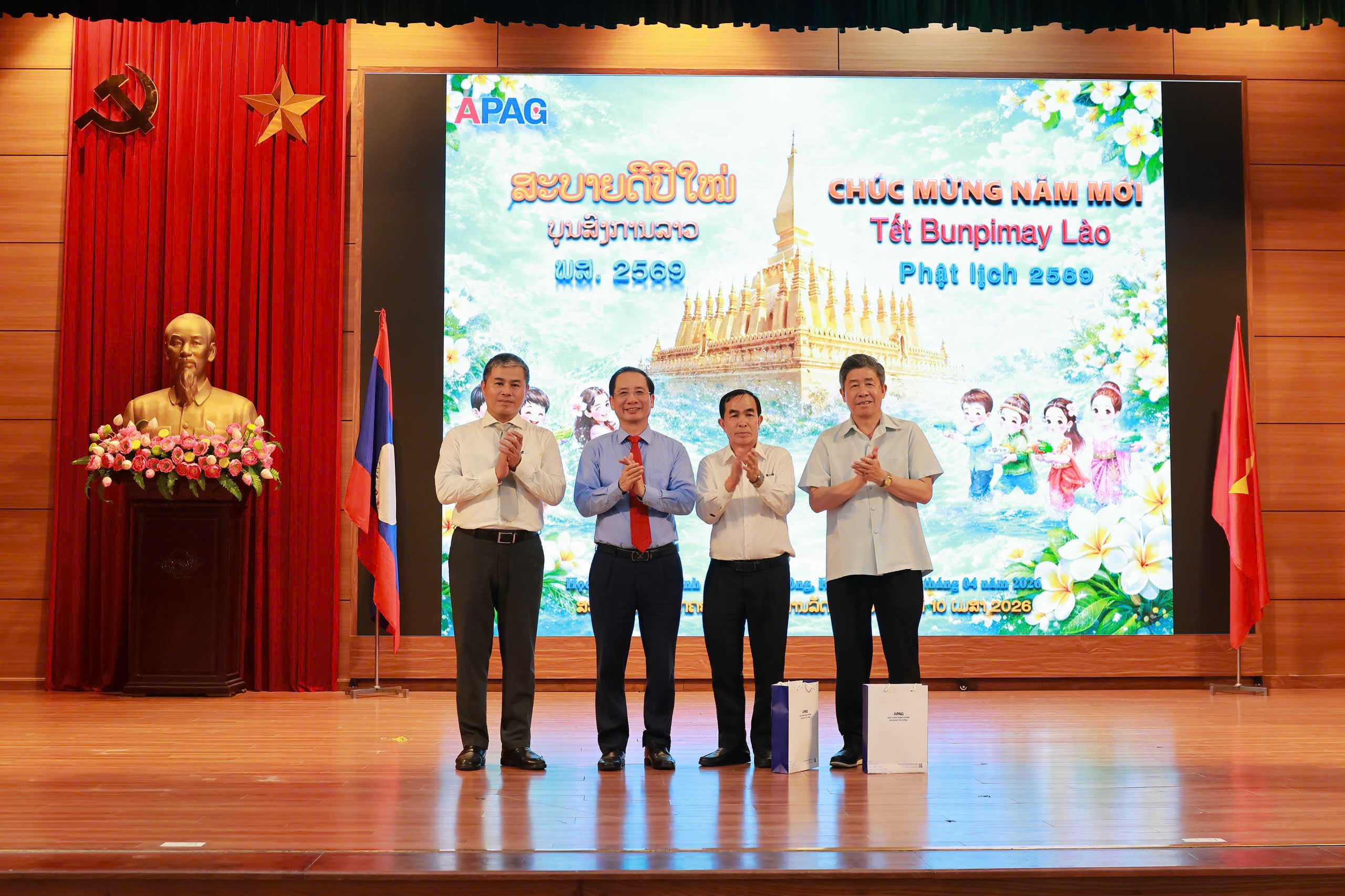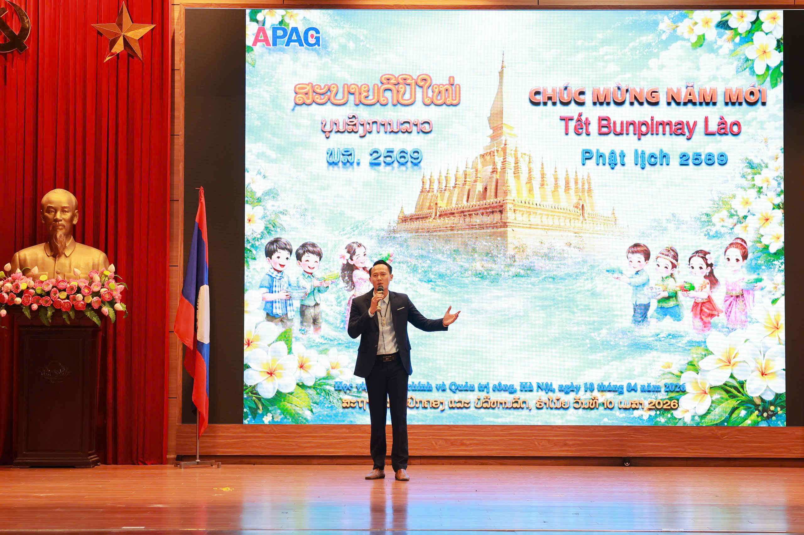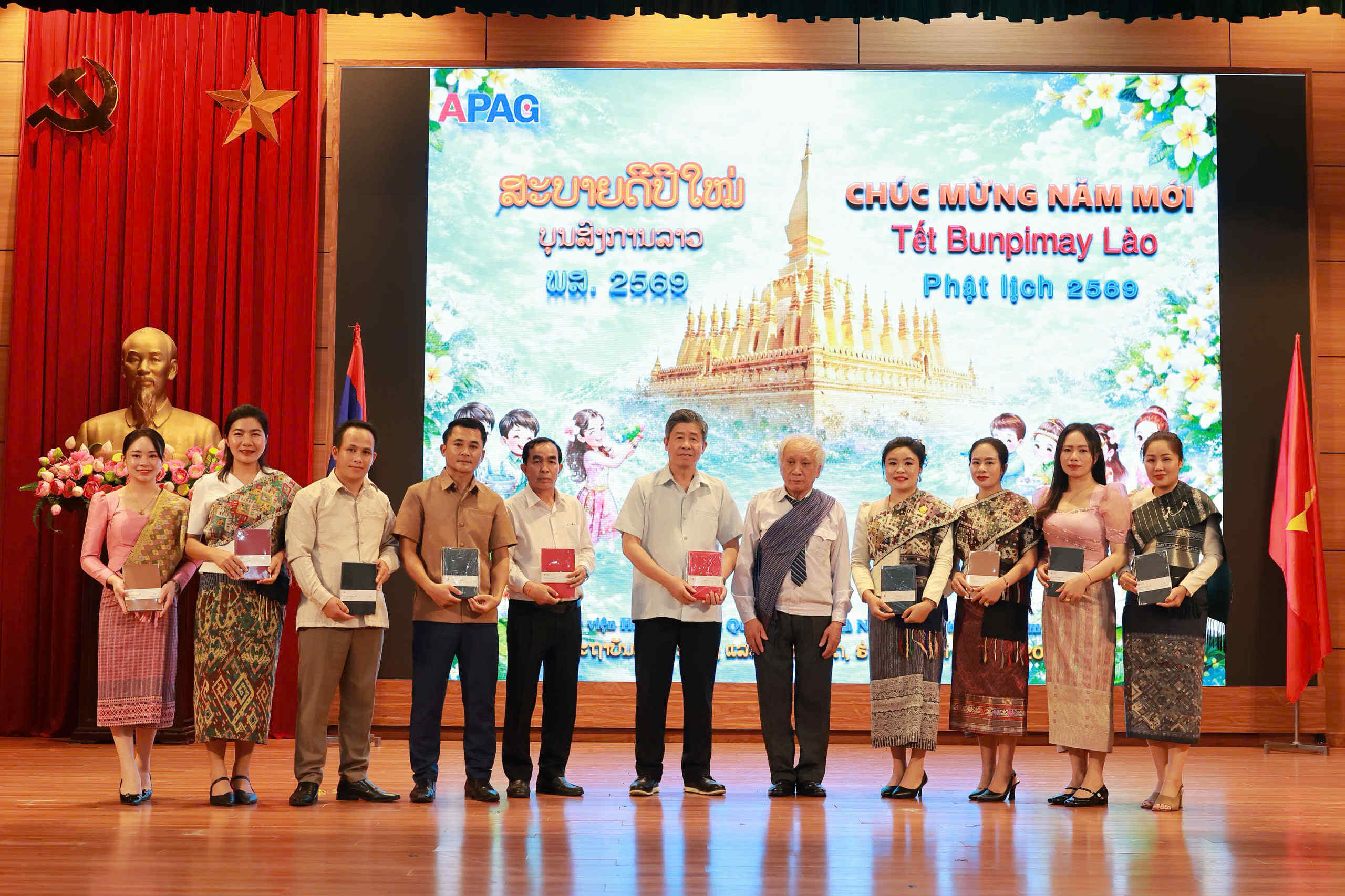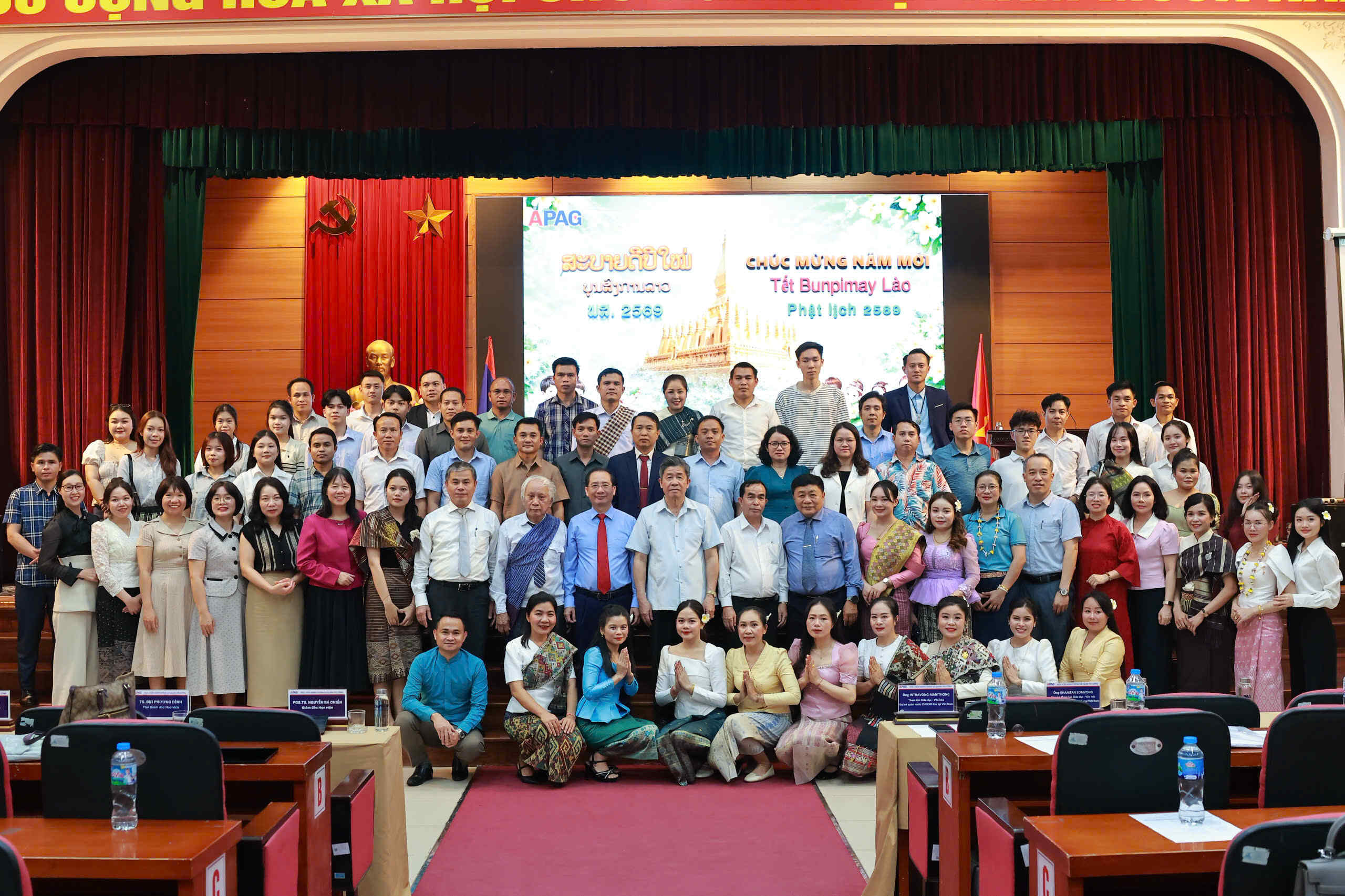 (apag.edu.vn) - Chiều ngày 10/4/2026, tại Hà Nội, Học viện Hành chính và Quản trị công tổ chức buổi lễ chúc mừng Tết cổ truyền Bunpimay 2026 (Phật lịch năm 2569) tới các lưu học sinh nước Cộng hòa Dân chủ Nhân dân Lào đang nghiên cứu và học tập tại Học viện.