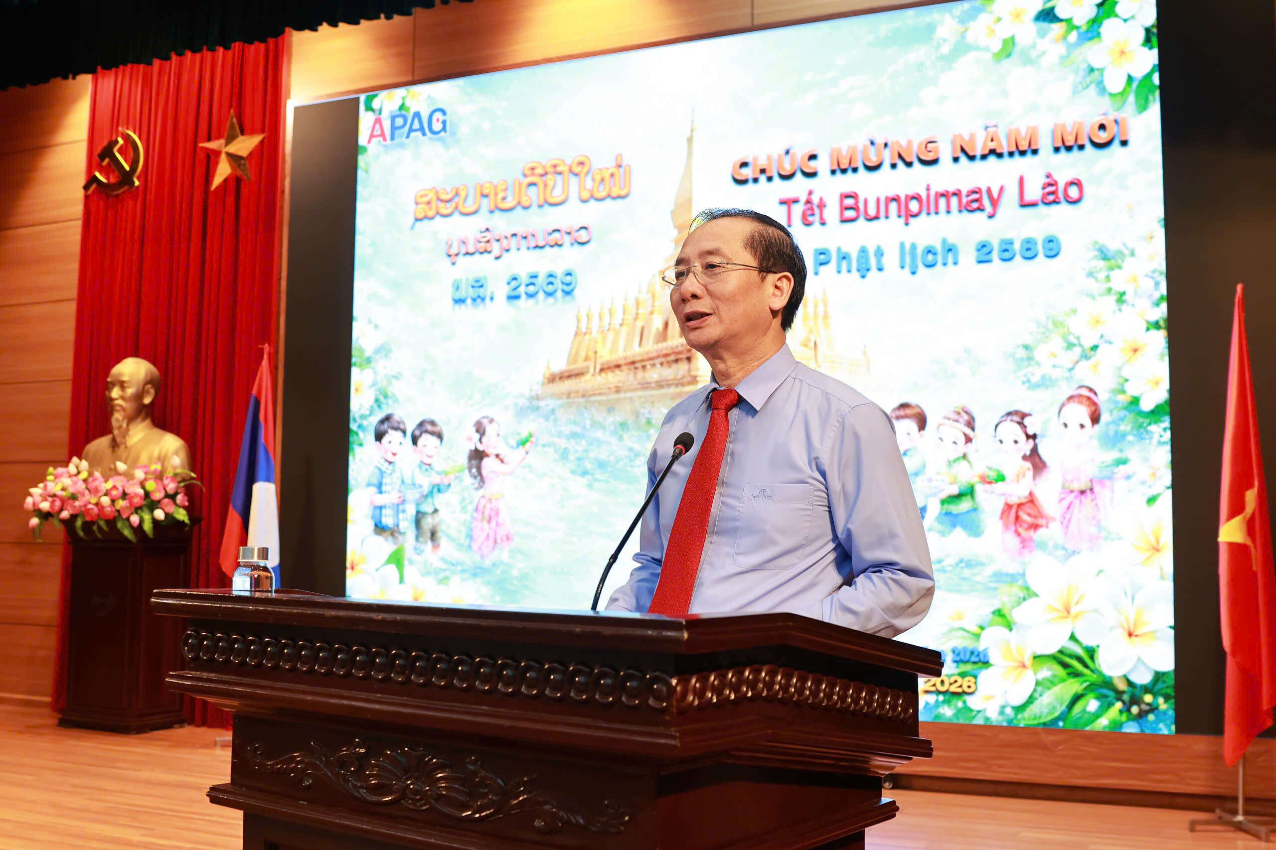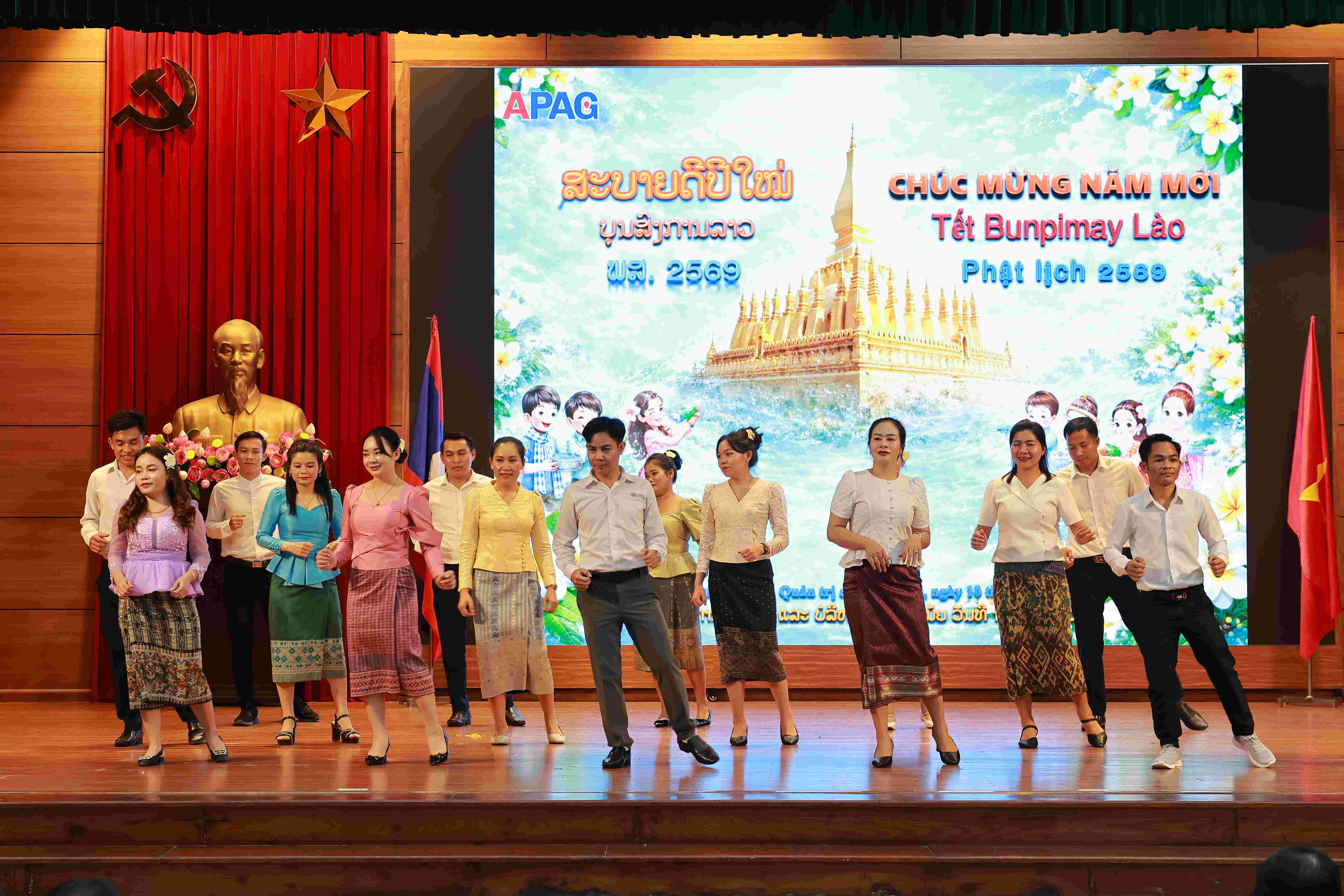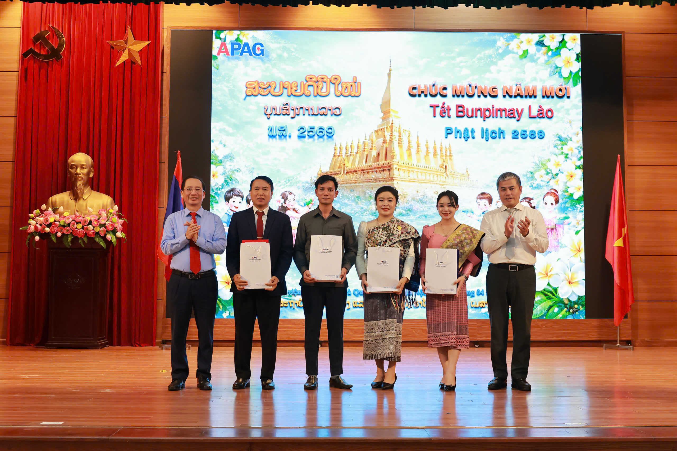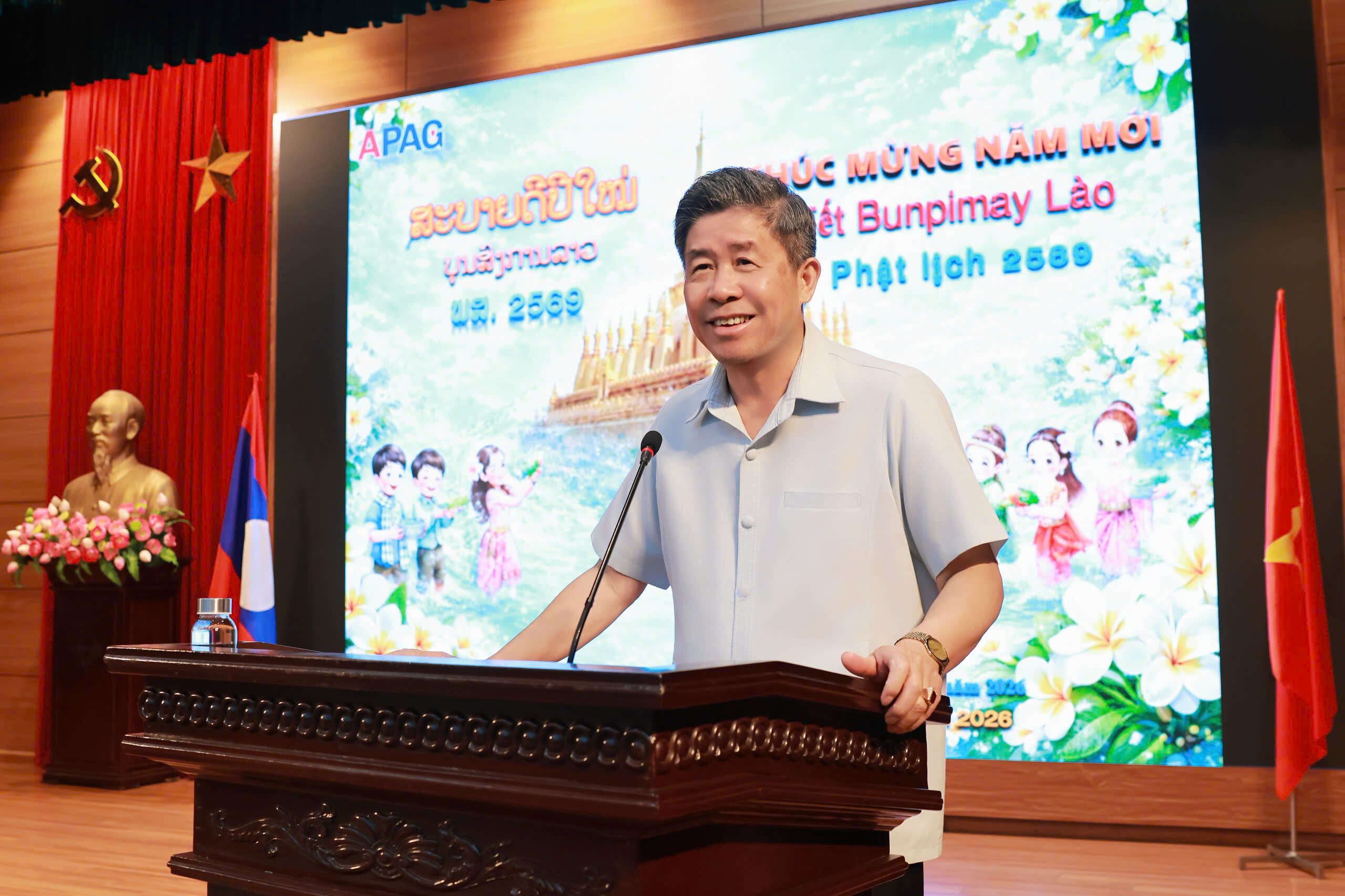(apag.edu.vn) - Chiều ngày 10/4/2026, tại Hà Nội, Học viện Hành chính và Quản trị công tổ chức buổi lễ chúc mừng Tết cổ truyền Bunpimay 2026 (Phật lịch năm 2569) tới các lưu học sinh nước Cộng hòa Dân chủ Nhân dân Lào đang nghiên cứu và học tập tại Học viện.