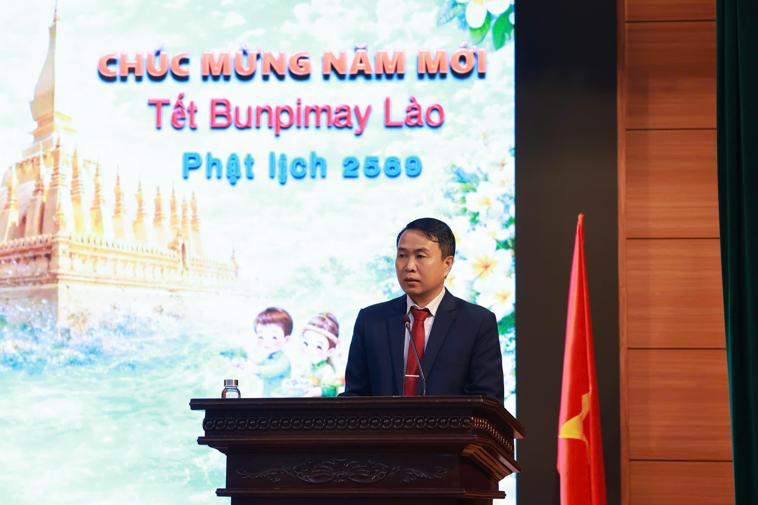 PGS.TS. Nguyễn Bá Chiến nhấn mạnh, Tết Bunpimay không chỉ là thời khắc chuyển giao năm mới mà còn là dịp để mỗi người dân Lào hướng về cội nguồn, gìn giữ và lan tỏa những giá trị văn hóa truyền thống tốt đẹp, đồng thời củng cố tinh thần đoàn kết và gắn bó cộng đồng.