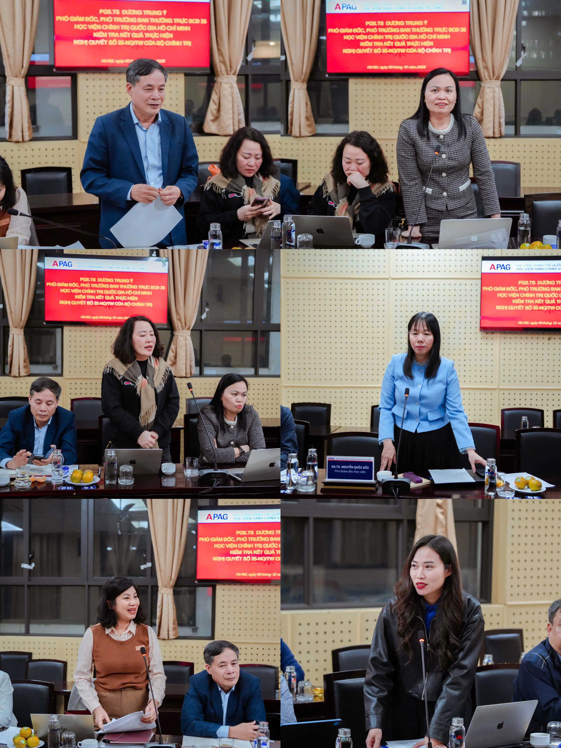 Trên cơ sở kết quả triển khai Nghị quyết số 35-NQ/TW năm 2025 của Học viện Hành chính và Quản trị công, các đại biểu đã tập trung thảo luận, phân tích, nhận diện rõ những thành tựu đạt được và những hạn chế còn tồn tại; đồng thời đề xuất nhiều kiến nghị nhằm nâng cao hiệu quả công tác bảo vệ nền tảng tư tưởng của Đảng, đấu tranh phản bác các quan điểm sai trái, thù địch. Qua quá trình trao đổi, Hội nghị đã đúc rút các bài học kinh nghiệm và gợi mở phương hướng, nhiệm vụ trọng tâm cho năm 2026, gắn với việc thực hiện các nhiệm vụ chính trị của Học viện trong giai đoạn mới.