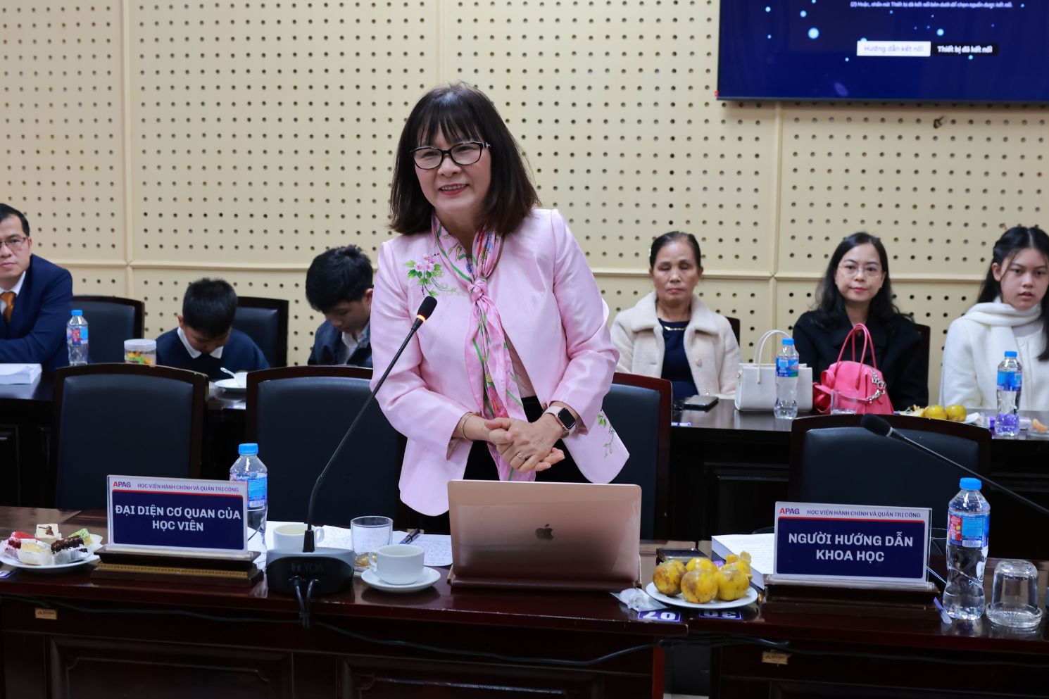 TS. Nguyễn Thị Hà phát biểu về luận án của nghiên cứu sinh Châu Ngọc LươngPhát biểu sau buổi bảo vệ, nghiên cứu sinh Châu Ngọc Lương đã gửi lời cảm ơn chân thành đến Ban Giám đốc Học viện Hành chính và Quản trị công, các thầy cô hướng dẫn, các nhà khoa học trong Hội đồng cùng cơ quan công tác, đồng nghiêp, gia đình và bạn bè đã tạo điều kiện thuận lợi trong suốt quá trình học tập và nghiên cứu.