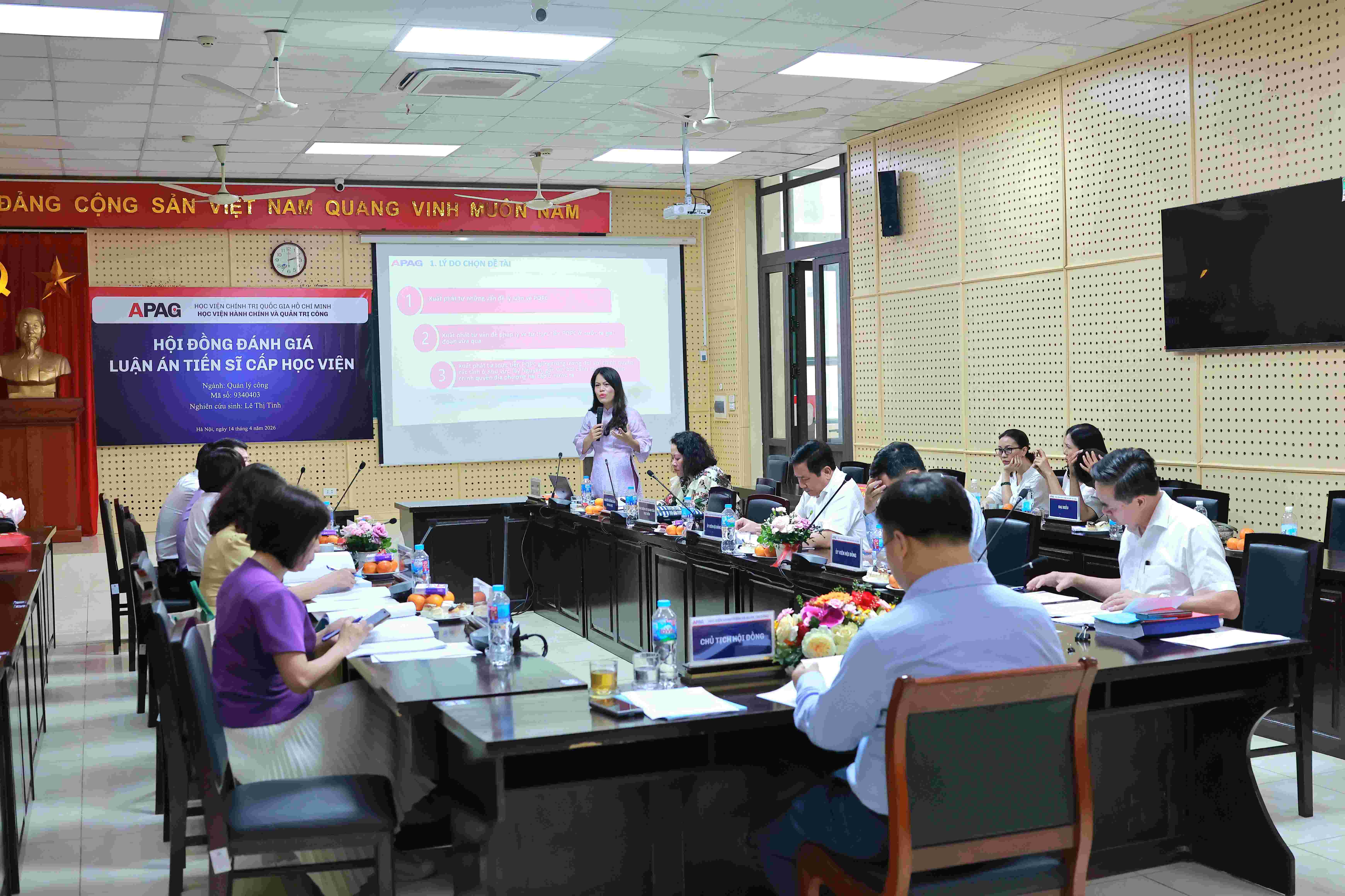 Sau phần trình bày báo cáo tóm tắt về đề tài nghiên cứu của Nghiên cứu sinh, Hội đồng đã đưa ra nhiều đánh giá và ý kiến đóng góp khoa học, sâu sắc về cả nội dung và hình thức của luận án. Hội đồng nhận định luận án có giá trị cả về lý luận và thực tiễn, bám sát yêu cầu đổi mới quản lý nhà nước trong giai đoạn hiện nay.