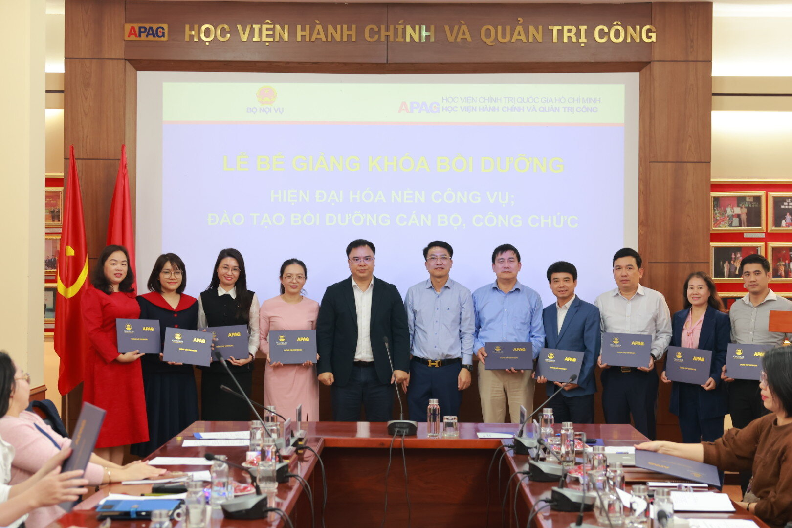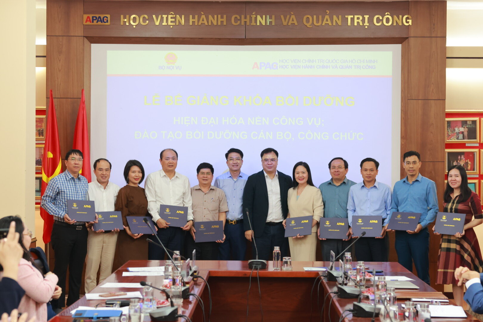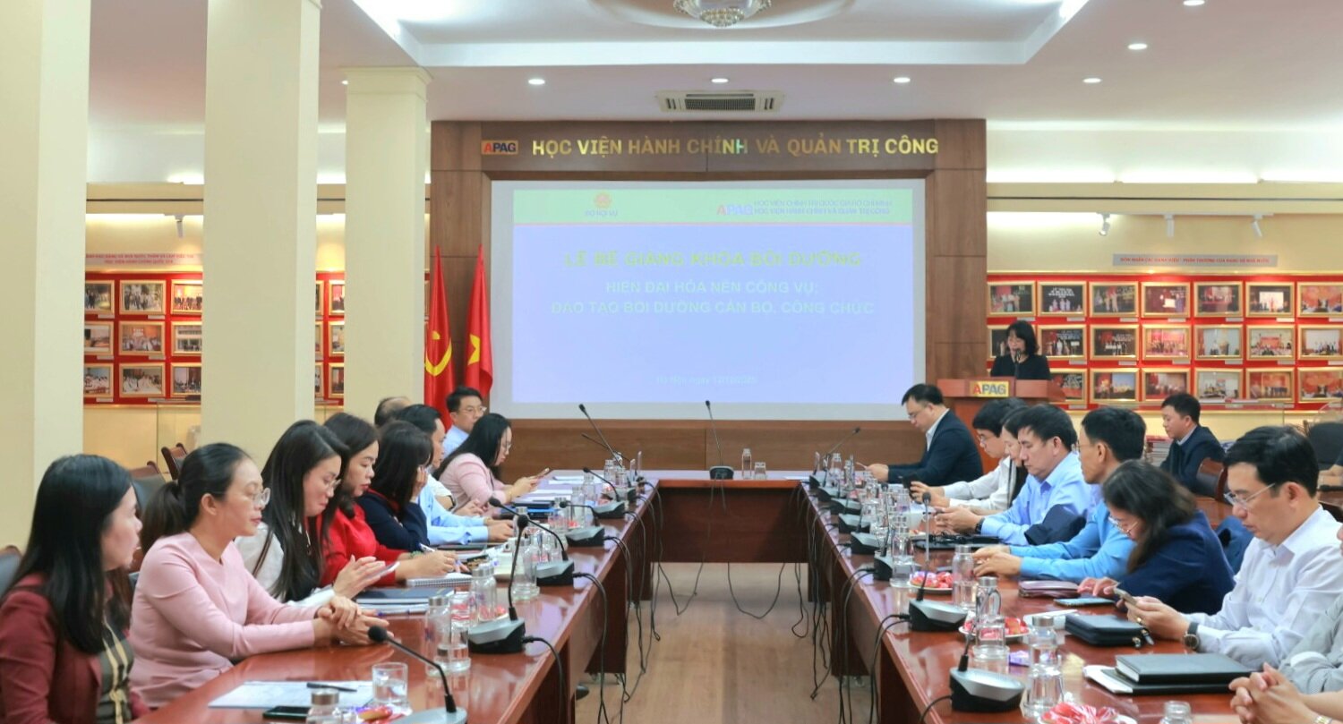Lễ Bế giảng khóa bồi dưỡng “Hiện đại hóa nền công vụ; đào tạo, bồi dưỡng cán bộ, công chức” đã khép lại thành công tốt đẹp, khẳng định hiệu quả của mô hình đào tạo gắn lý luận với thực tiễn và kinh nghiệm quốc tế. Những kiến thức, kỹ năng và tư duy quản trị hiện đại được trang bị từ khóa học sẽ là nền tảng quan trọng để học viên vận dụng vào công tác lãnh đạo, quản lý tại cơ quan, đơn vị. Qua đó, góp phần nâng cao chất lượng đội ngũ cán bộ, công chức, đáp ứng yêu cầu cải cách hành chính và xây dựng nền công vụ chuyên nghiệp, hiện đại, phục vụ nhân dân trong giai đoạn mới.